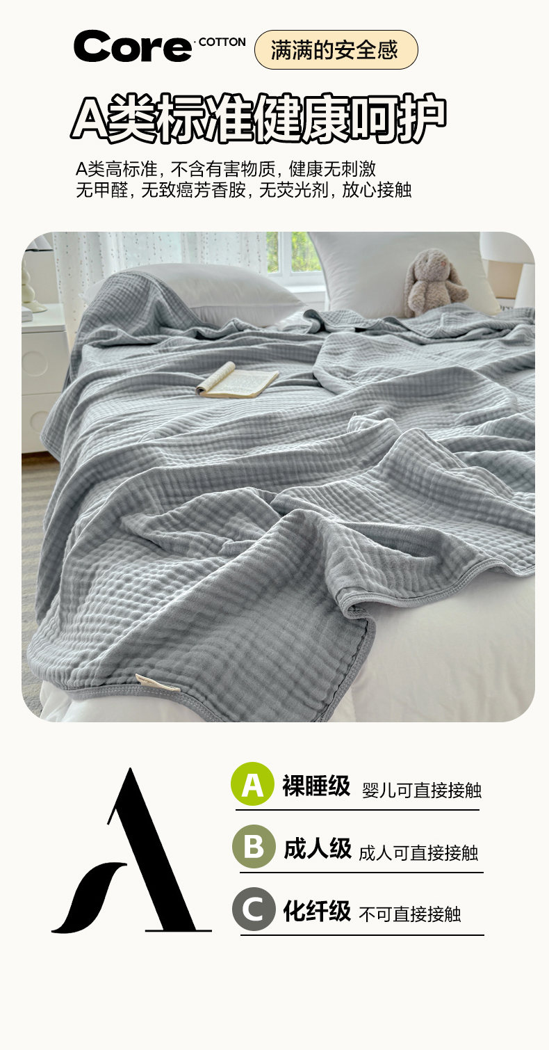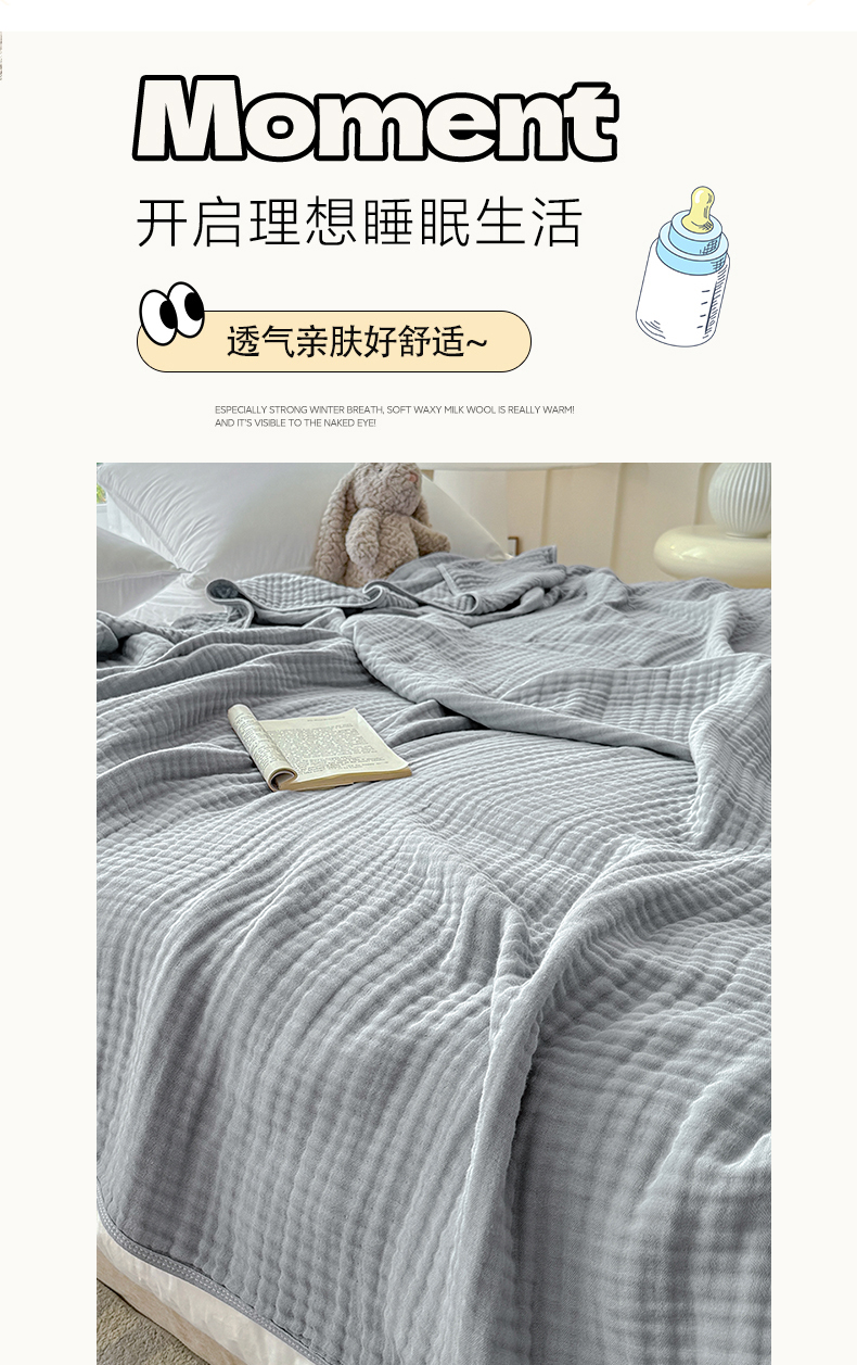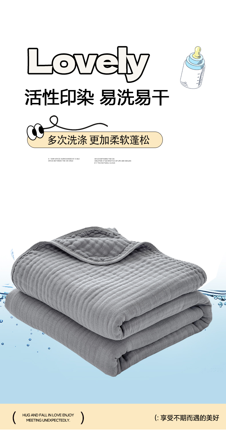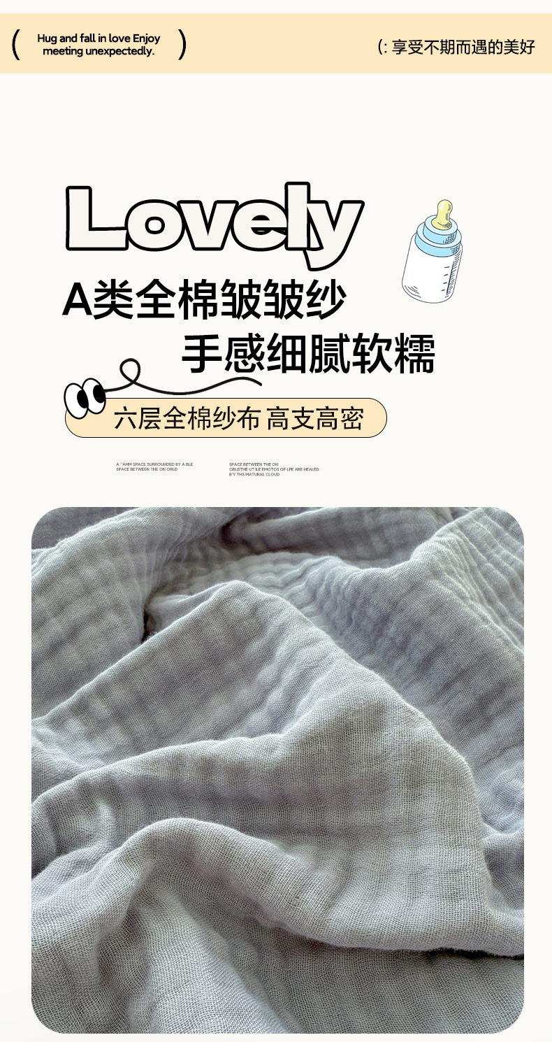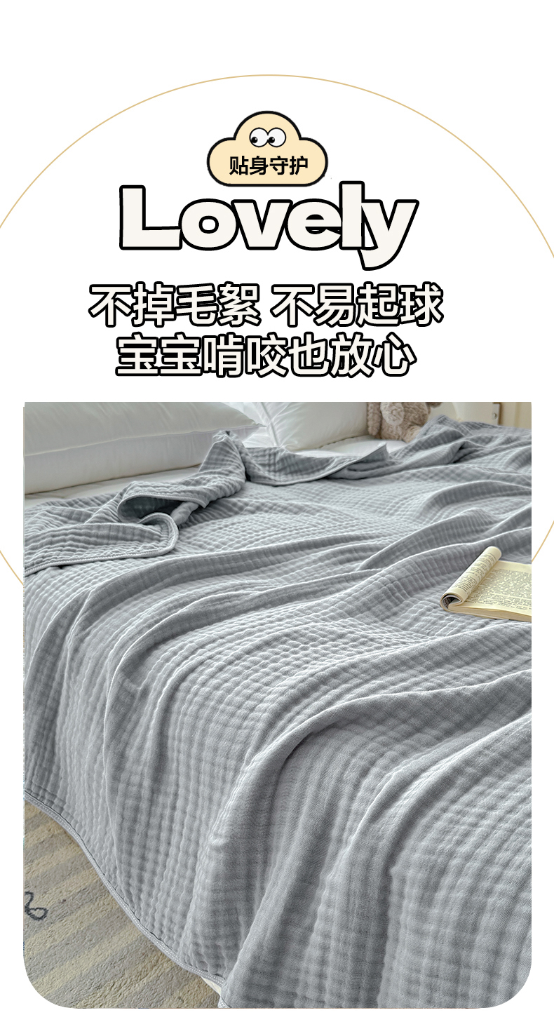 商品名称:棠薇家纺 2025新款A类日韩无印风泡泡纱六层素色纯色盖毯毛巾被夏被皱皱毯婴幼毯浴巾 泡泡纱雾蓝