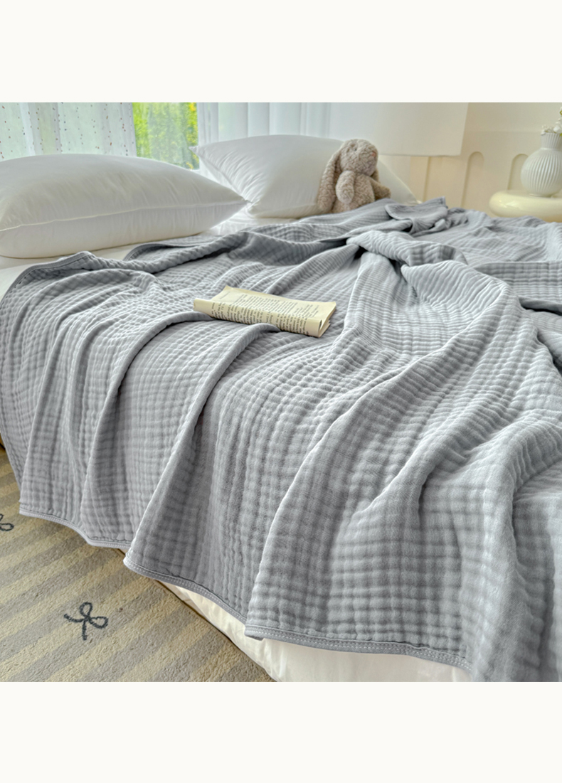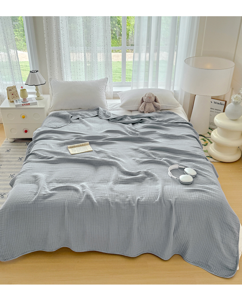 棠薇家纺 2025新款A类日韩无印风泡泡纱六层素色纯色盖毯毛巾被夏被皱皱毯婴幼毯浴巾 泡泡纱雾蓝