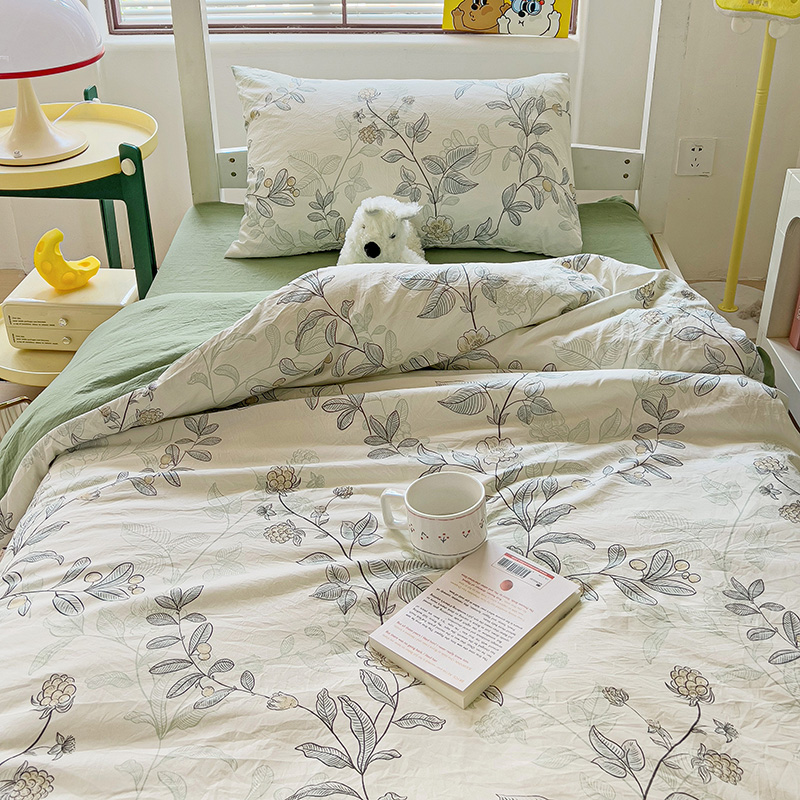 商品名称:海岛哥哥 2025新款云朵水洗棉学生床宿舍上下铺三件套 藤蔓