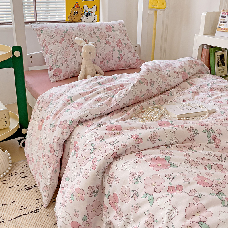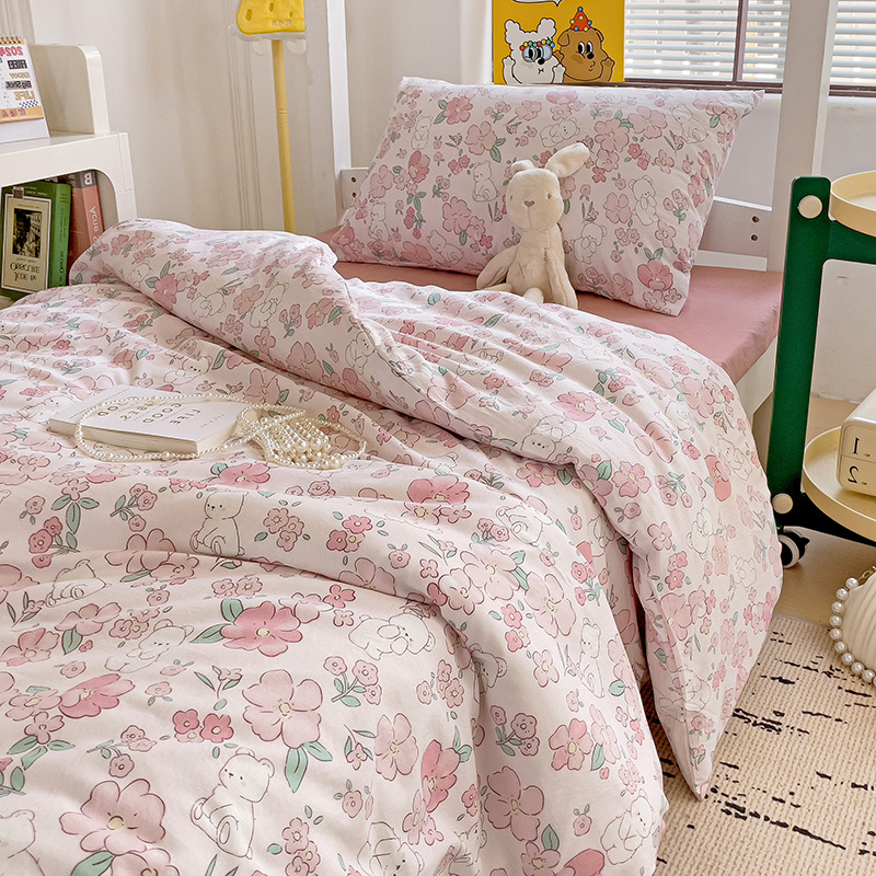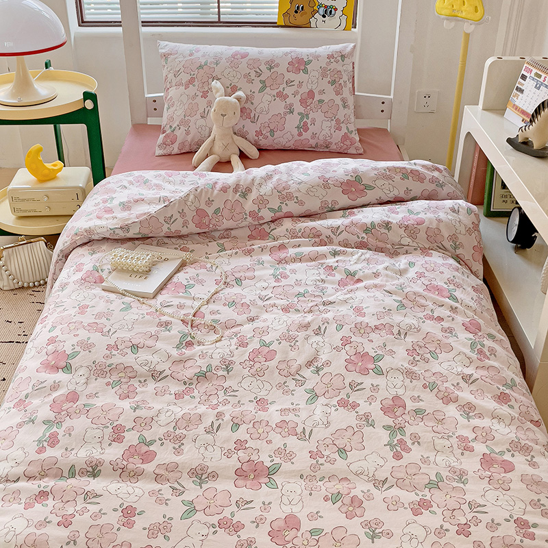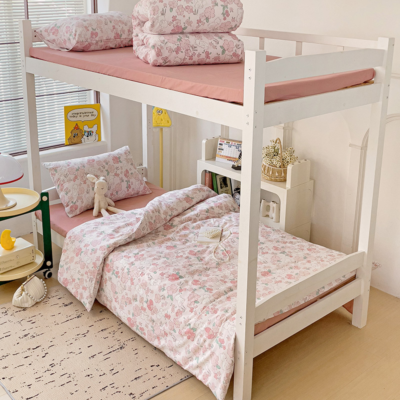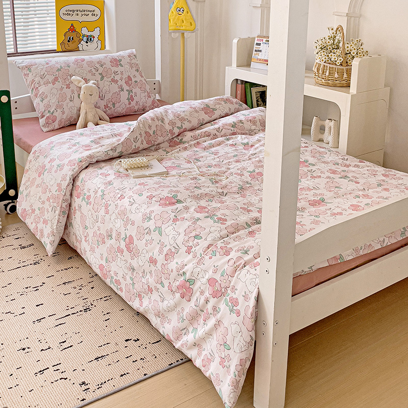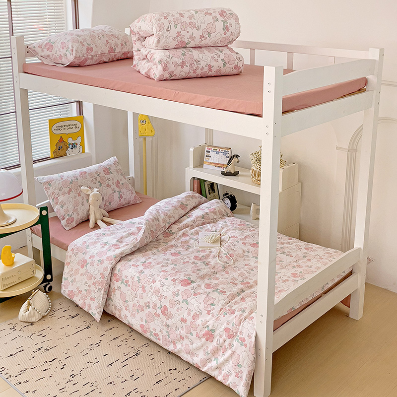 海岛哥哥 2025新款云朵水洗棉学生床宿舍上下铺三件套 乖粉熊