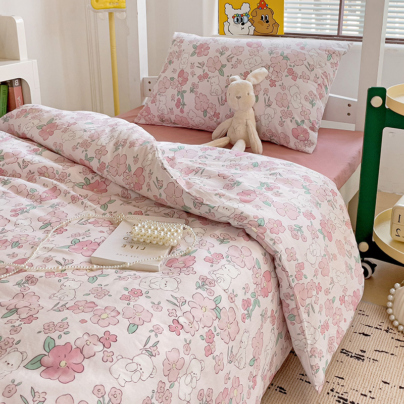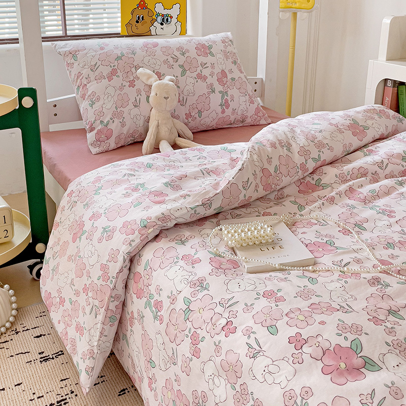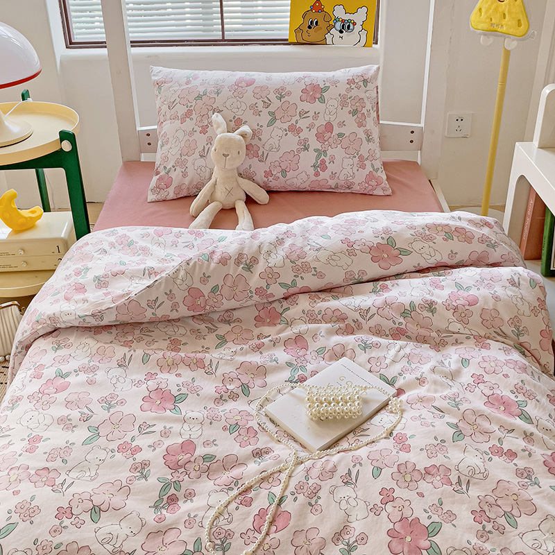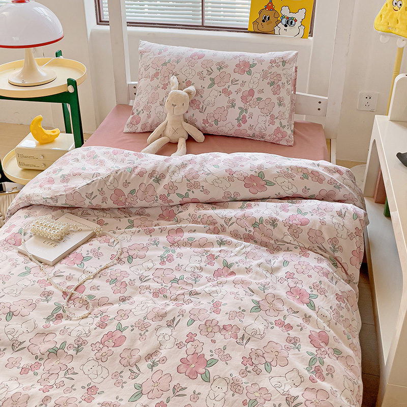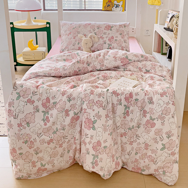 商品名称:海岛哥哥 2025新款云朵水洗棉学生床宿舍上下铺三件套 乖粉熊