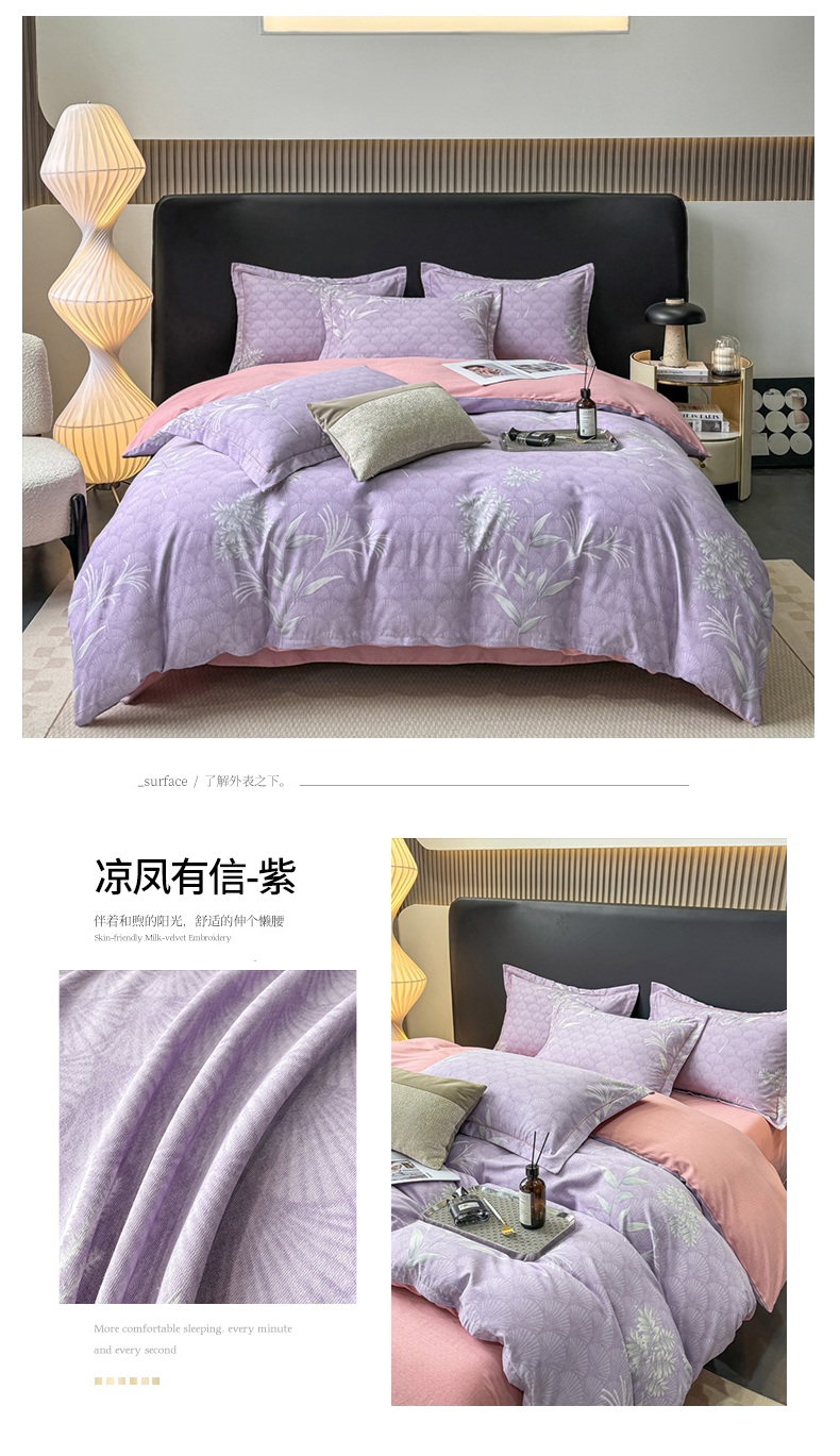 昊翔 2025下半年新款全棉纯棉加厚磨毛四件套 凉凤有信-紫