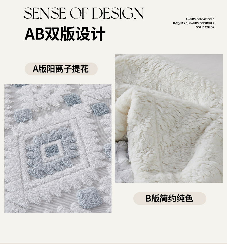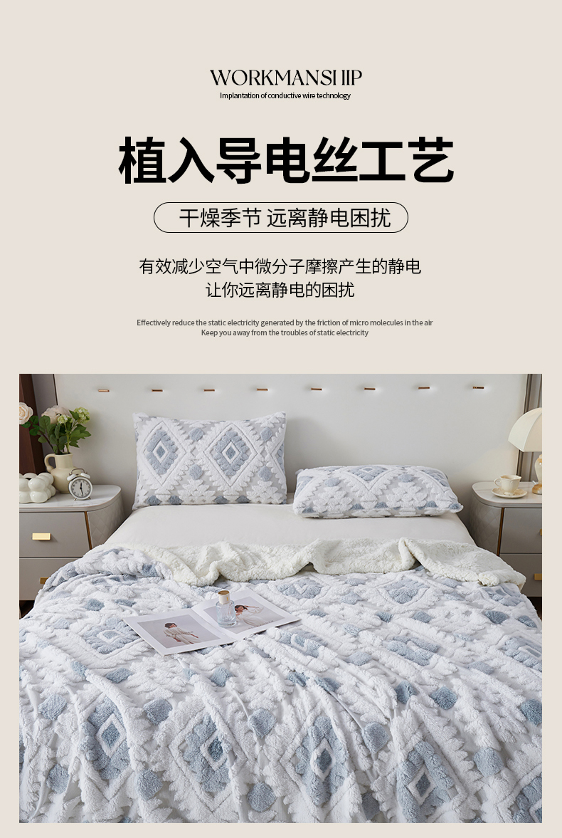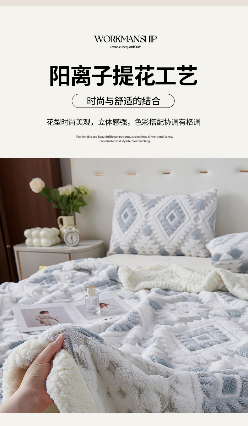 商品名称:缦纱 2025新款波西米亚阳离子提花镂空塔芙绒羊羔绒保暖午睡双层毛毯办公室盖毯 菱格-浅蓝