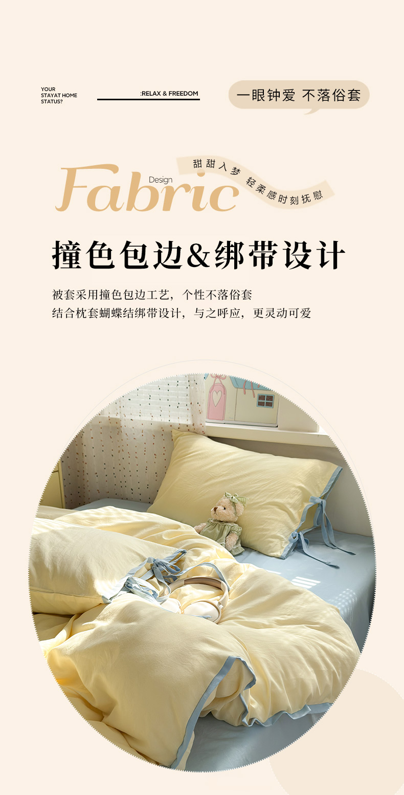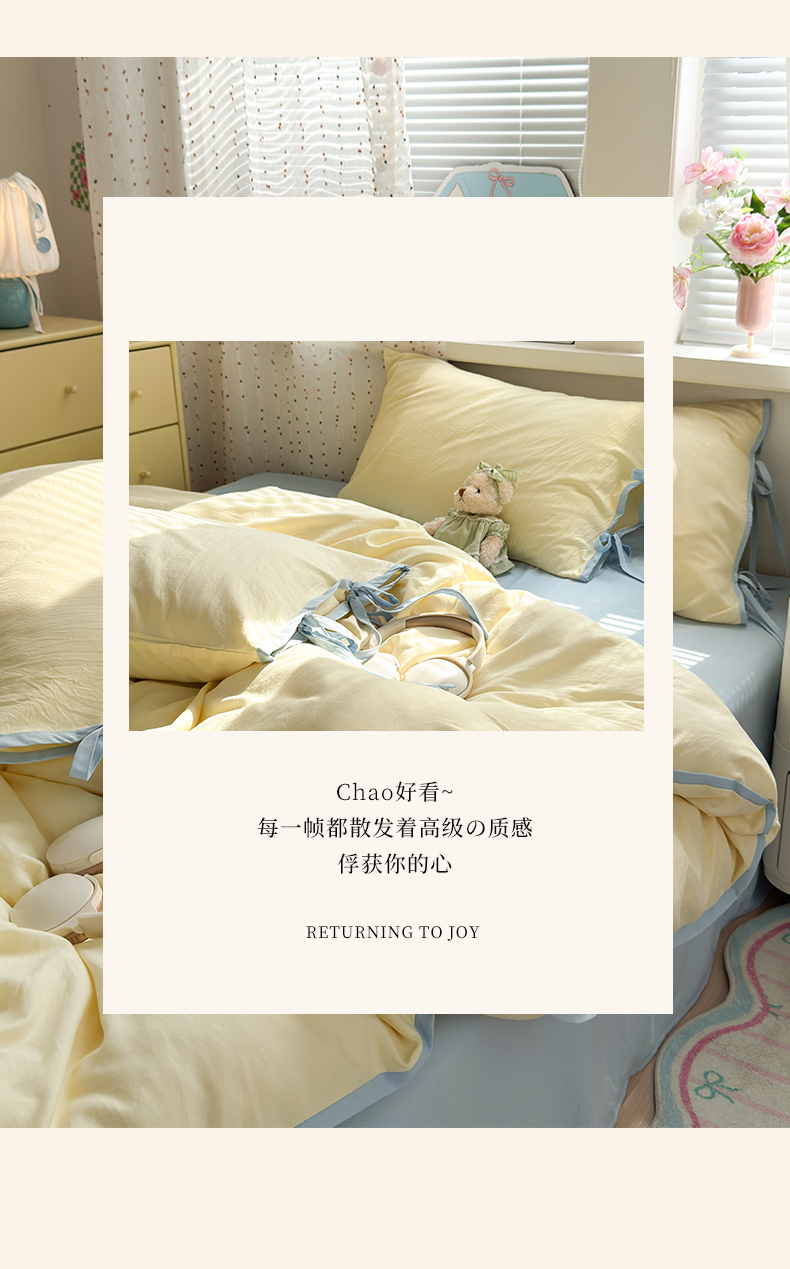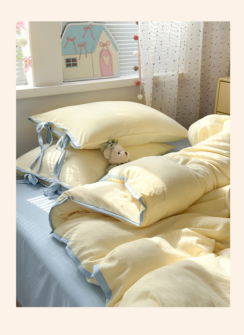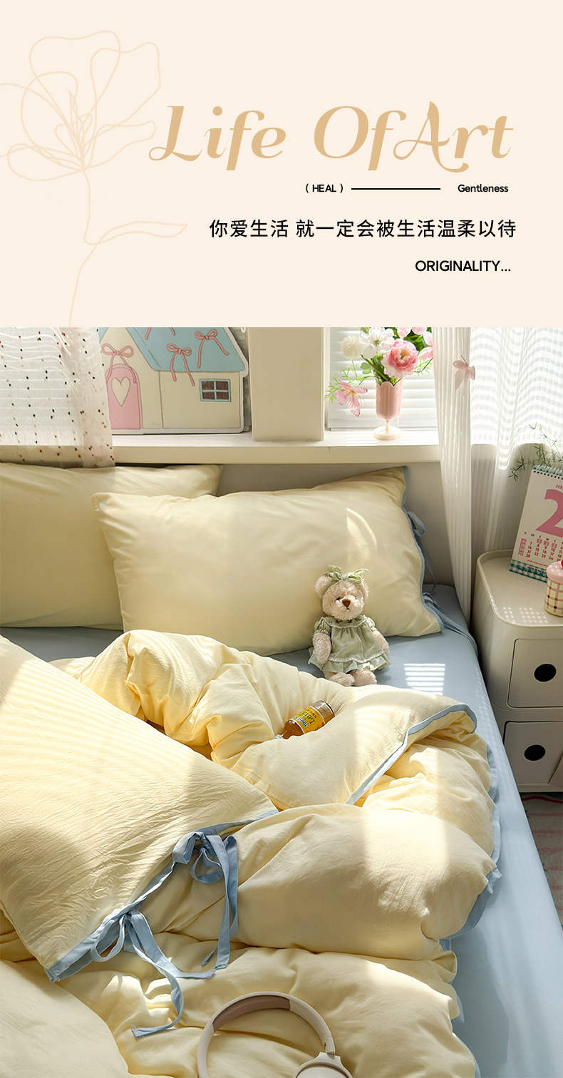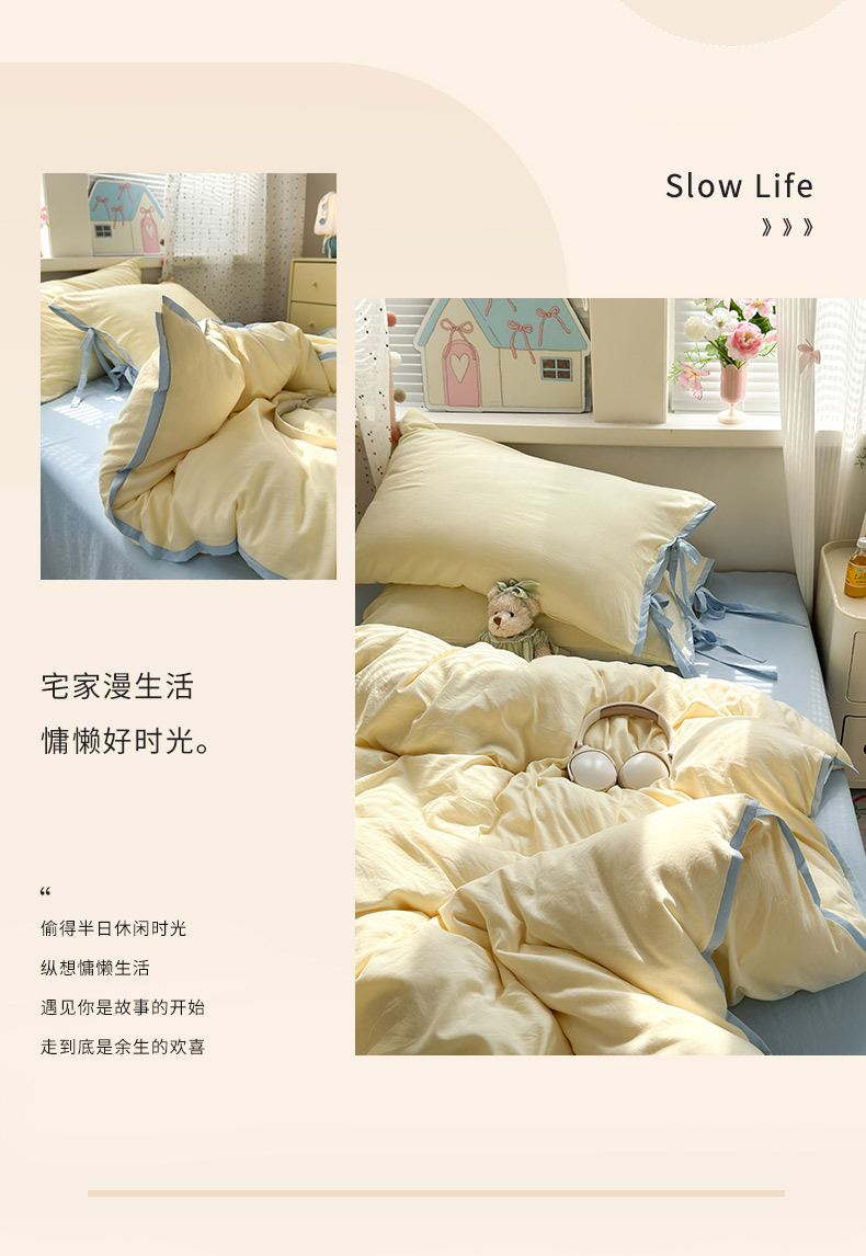 当前位置: 91家纺网 > 商品网购 > 床品套件 > 四件套 > 水洗棉四件套 > 尤米 2025新款水洗棉撞色绑带款四件套 绑带款-芝士黄