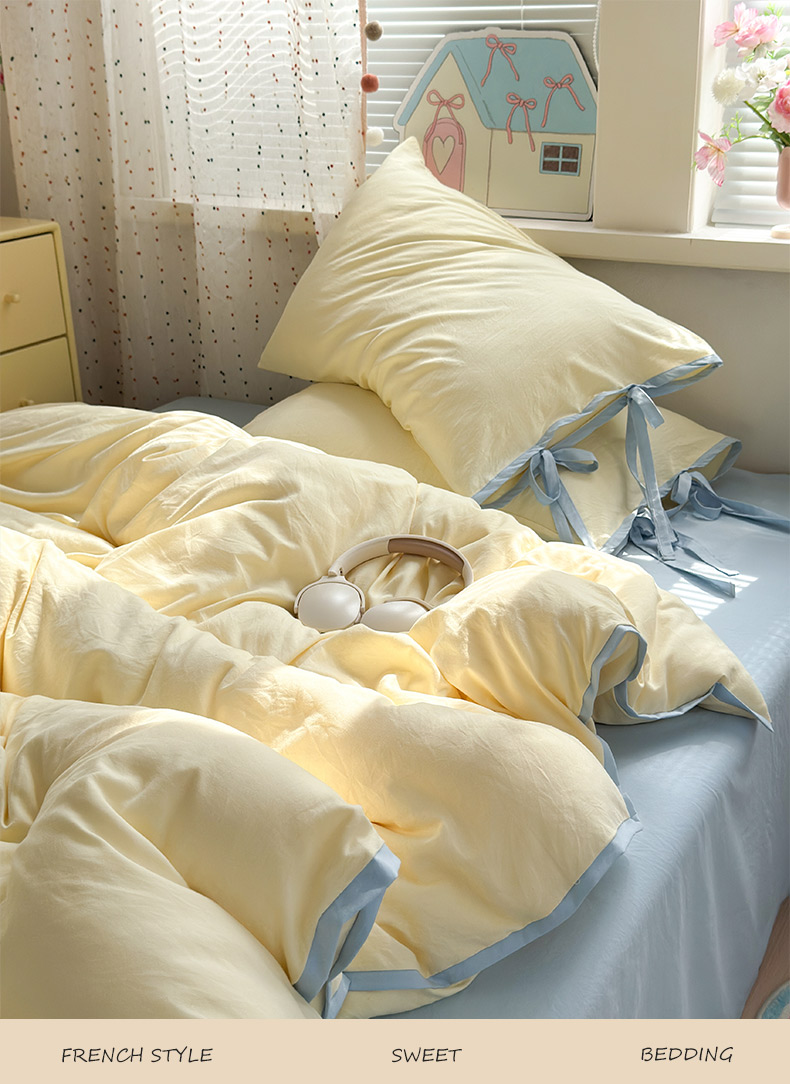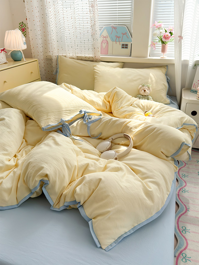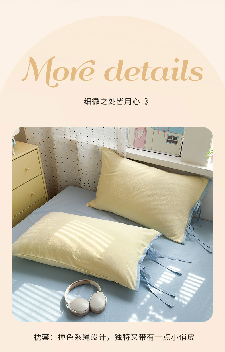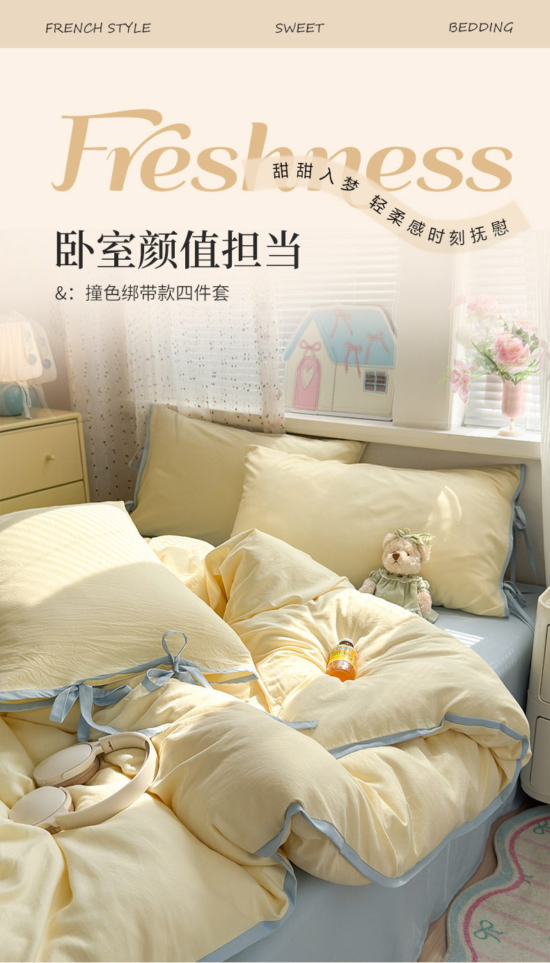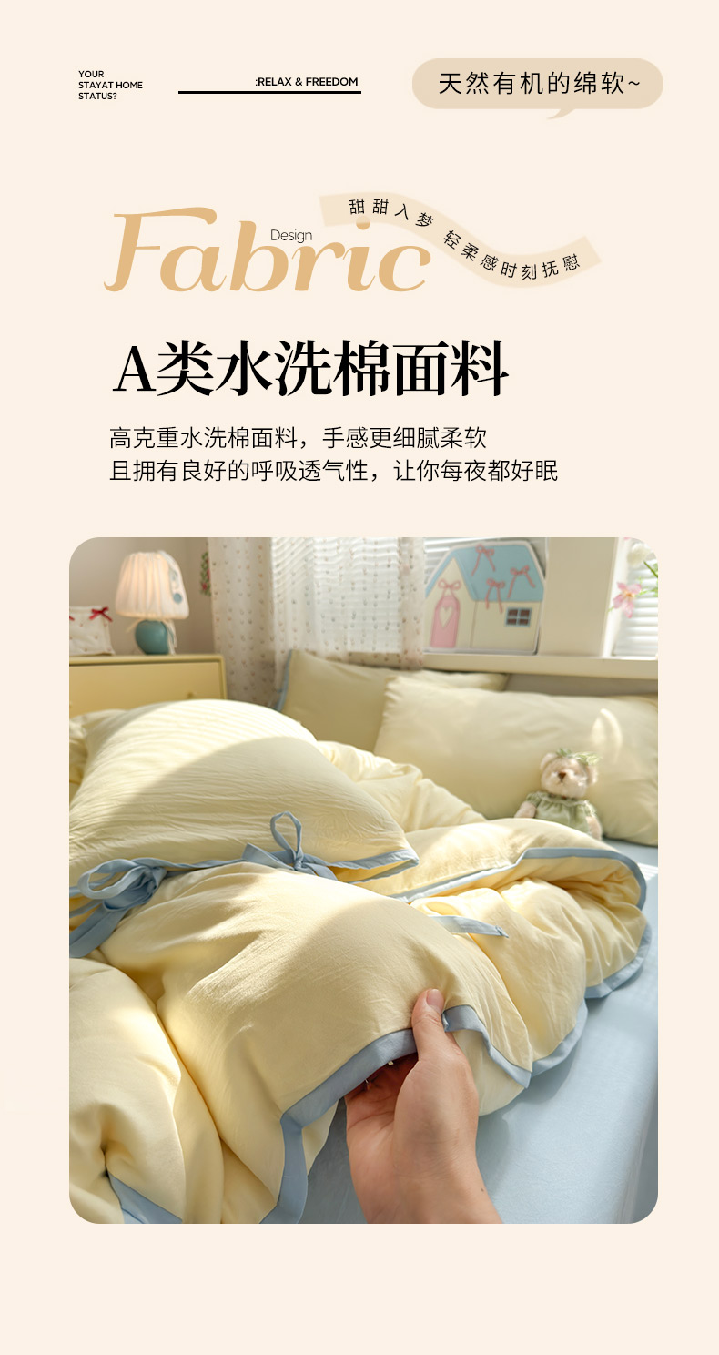 当前位置: 91家纺网 > 商品网购 > 床品套件 > 四件套 > 水洗棉四件套 > 尤米 2025新款水洗棉撞色绑带款四件套 绑带款-芝士黄