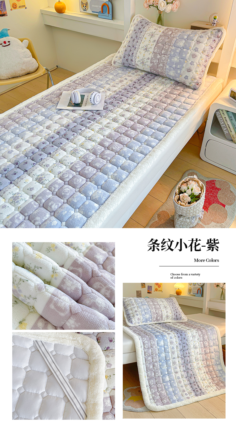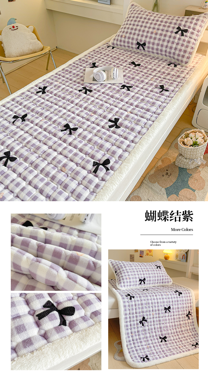 • 91家纺网 家纺一手货源 找家纺 梵朴 2025新款学生宿舍上下铺牛奶绒夹棉床垫床护垫床褥子 格子小熊
