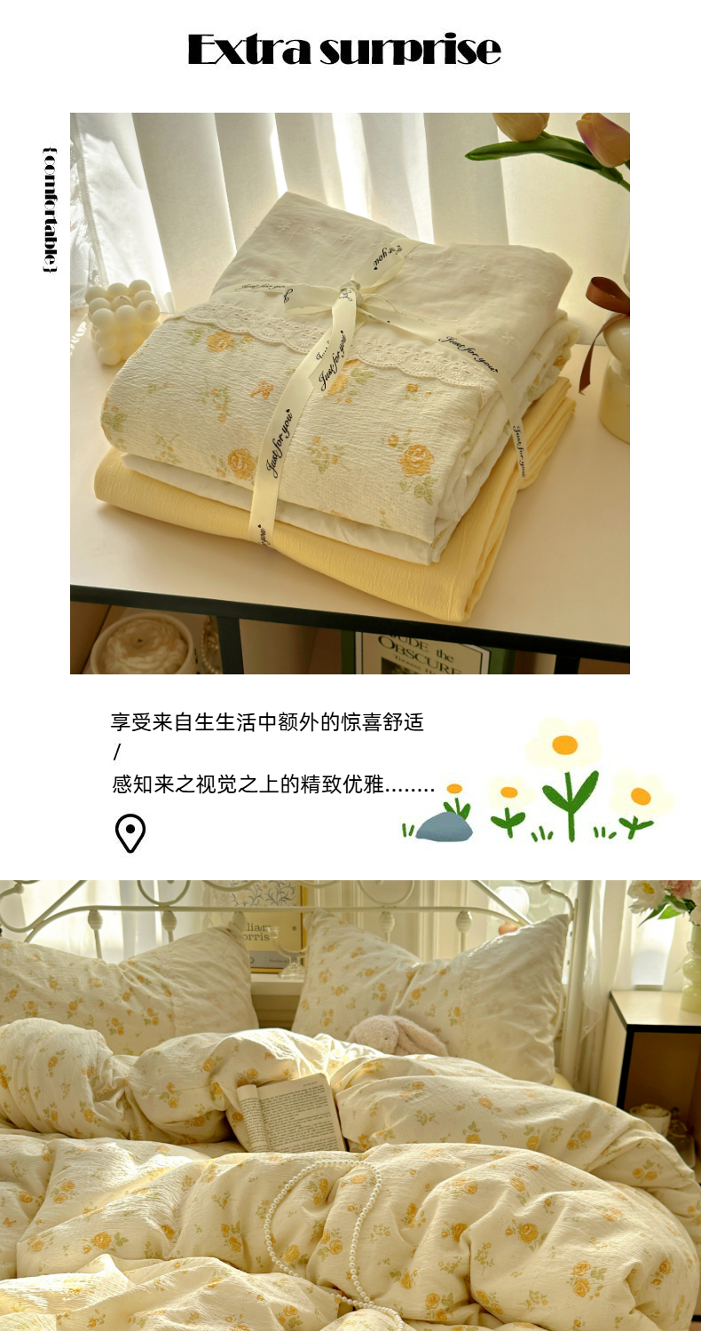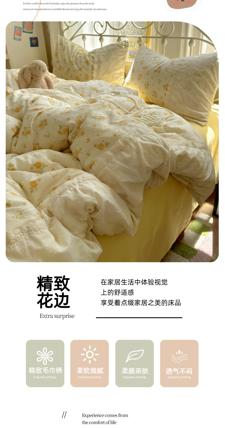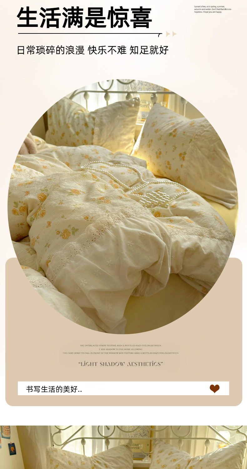 (总)思诺羽床笠 2025新款A类法式小清新皱皱纱花边蕾丝水洗棉床上四件套宿舍床笠三件套,草莓心情,蝶影,繁花千朵,黄色玫瑰,奶油波点,浓情郁金香,兔兔世界,紫色浪漫