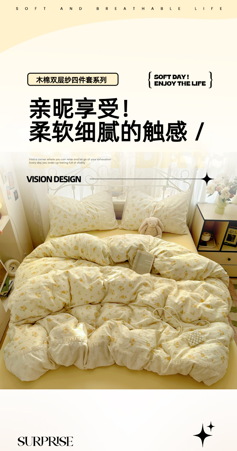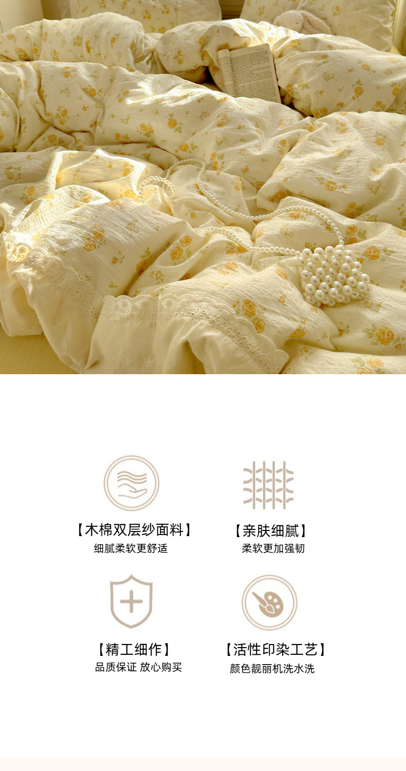 (总)思诺羽床笠 2025新款开学季法式花边A类双层纱木棉四件套,蔷薇花园,粉黛,花涧溪,花漾,玫瑰花语,小雏菊,郁金香,织春