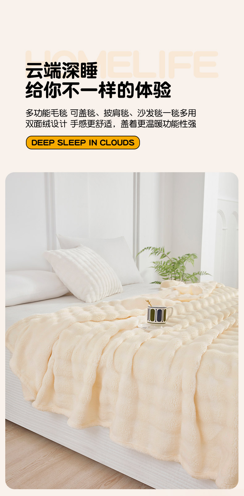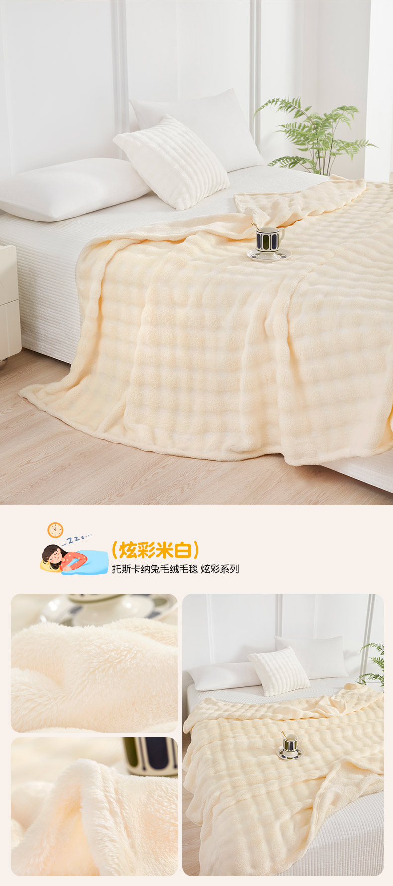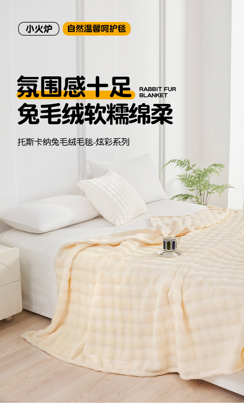 当前位置: 91家纺网 > 商品网购 > 毛毯休闲毯绒毯 > 毛毯 > 坦客毯业 2025新款托斯卡纳兔毛绒炫彩毛毯泡泡绒牛奶绒毯沙发盖毯跨境专供外贸出口可定制尺寸量大可谈 炫彩米白