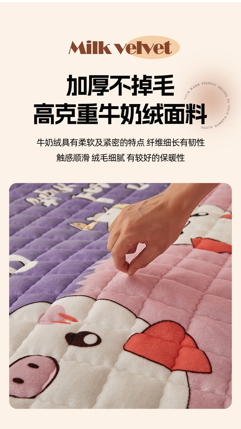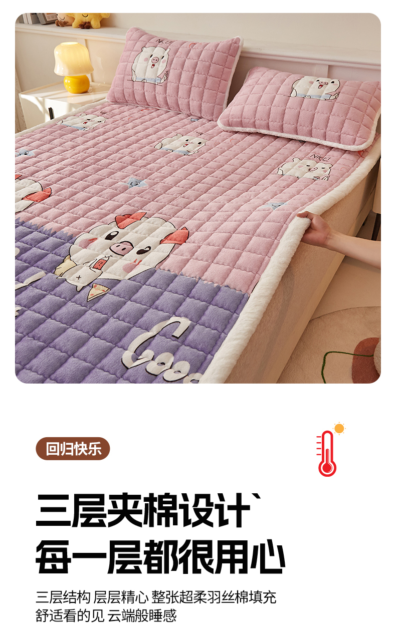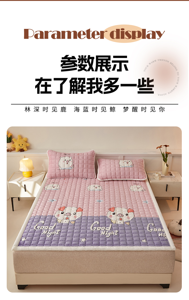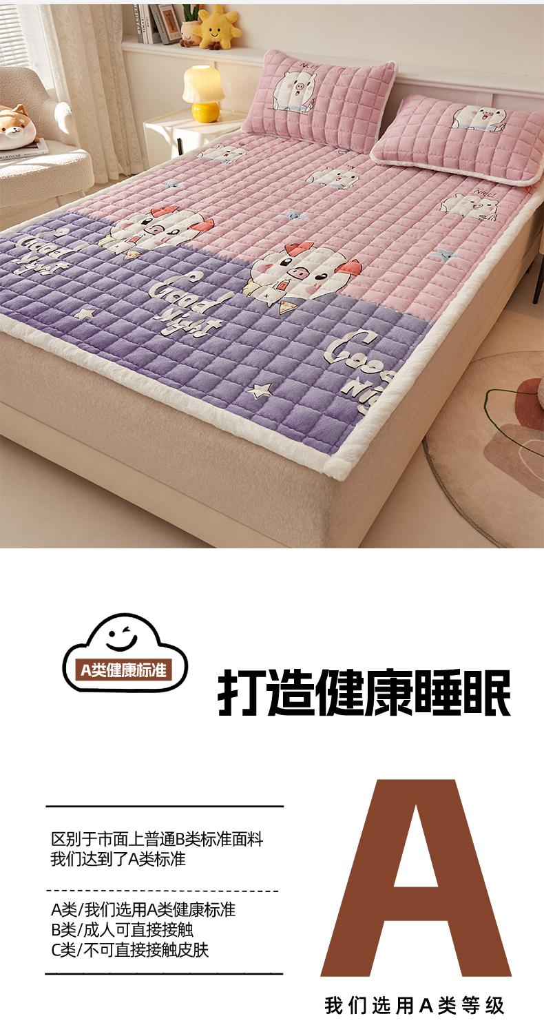 当前位置: 91家纺网 > 商品网购 > 床垫/床褥 > 普通床垫 > 东宇床垫 2025新款A类牛奶绒印花直角防滑床垫床褥三件套-成人款 晚安猪宝
