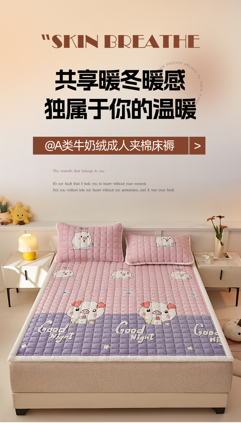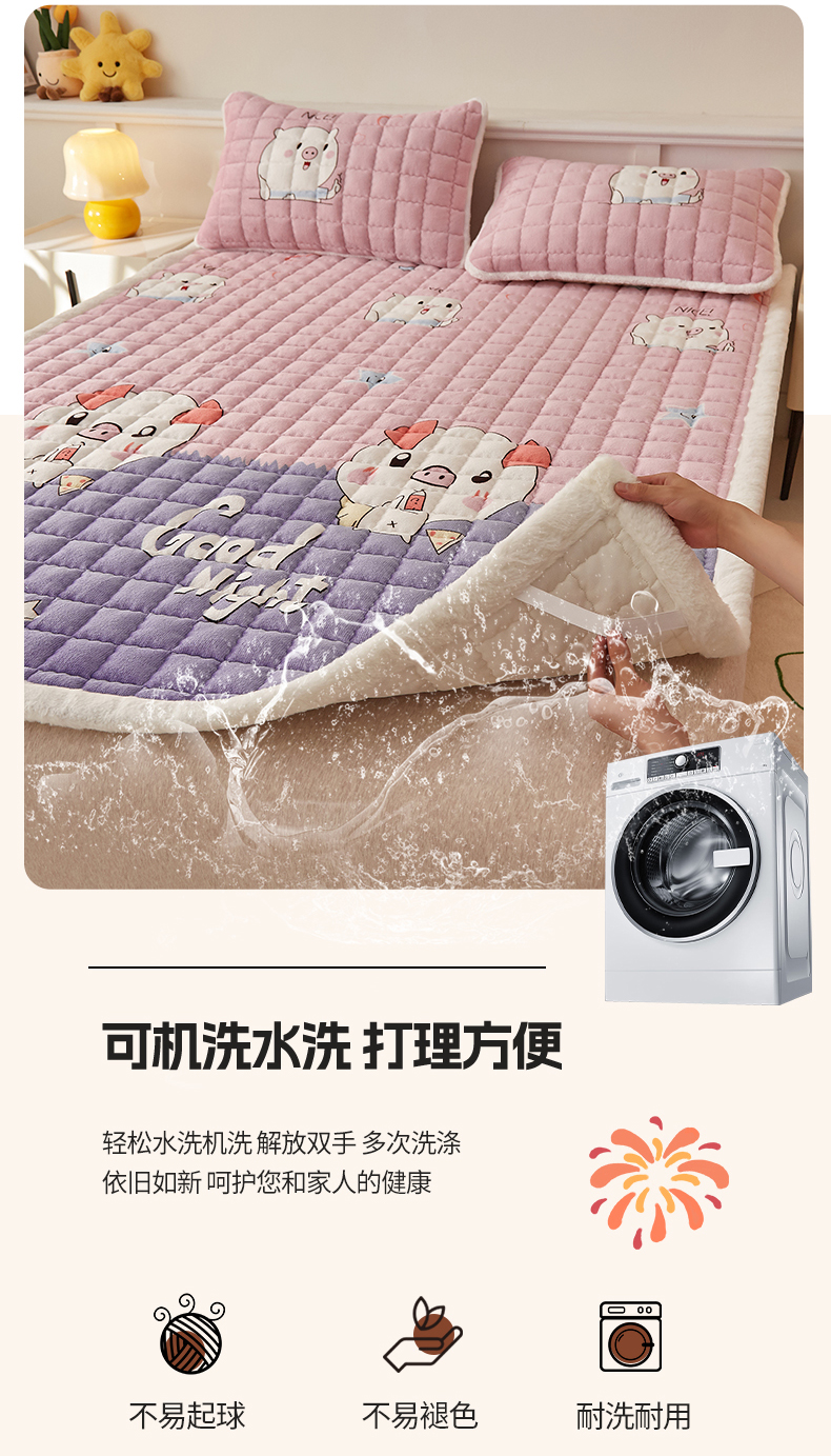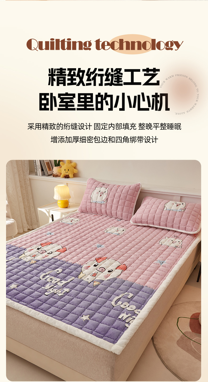 当前位置: 91家纺网 > 商品网购 > 床垫/床褥 > 普通床垫 > 东宇床垫 2025新款A类牛奶绒印花直角防滑床垫床褥三件套-成人款 晚安猪宝
