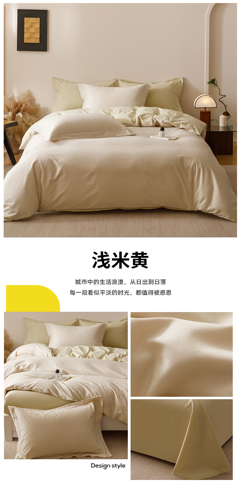 当前位置: 91家纺网 > 商品网购 > 床品套件 > 四件套 > 长绒棉四件套 > 爱思佳 2025新款A类全棉60s长绒棉纯棉磨毛纯色拼色系列四件套 杏花粉