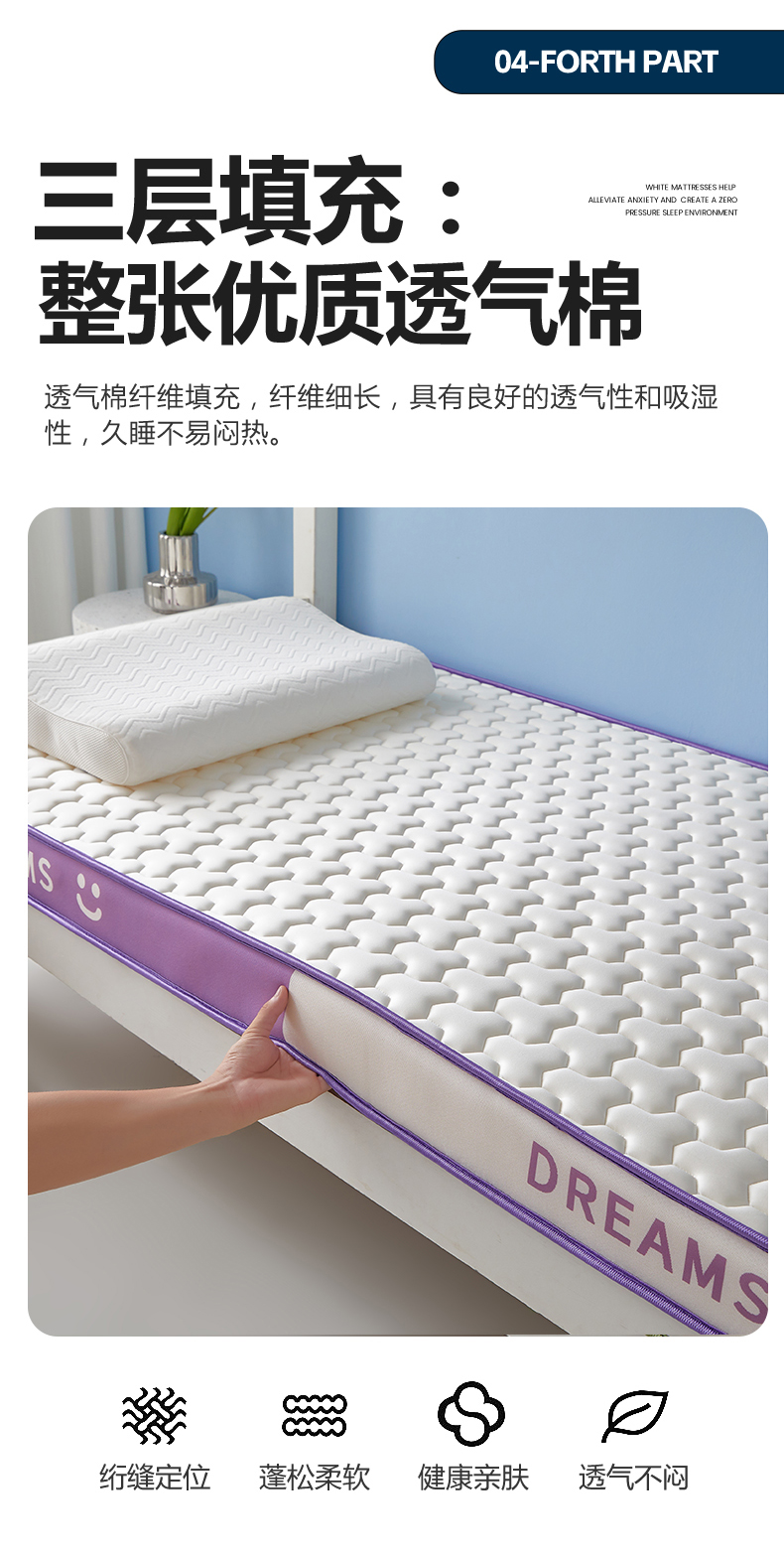 当前位置: 91家纺网 > 商品网购 > 床垫/床褥 > 普通床垫 > 暖季家纺 2025新款双拼色牛奶丝针织棉立体海绵三菱格学生床垫 立体紫白三菱格