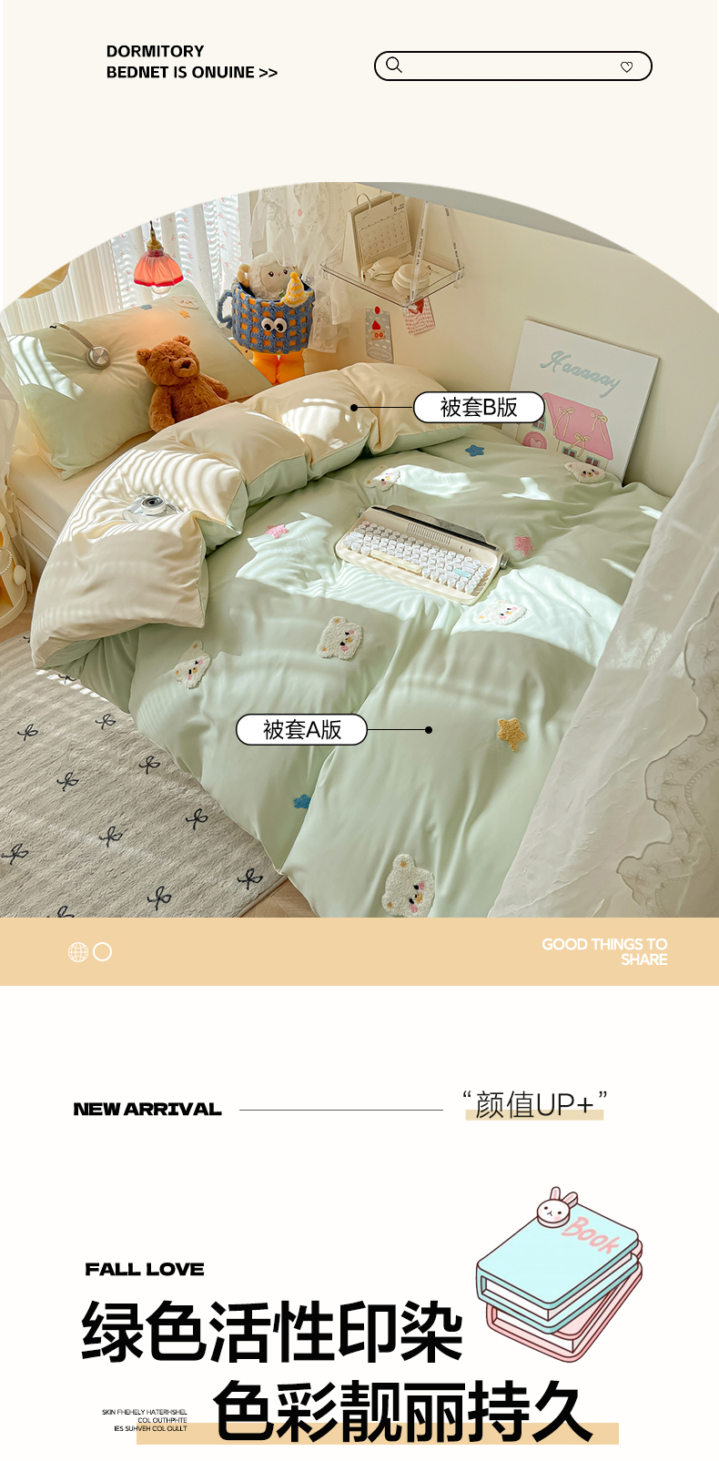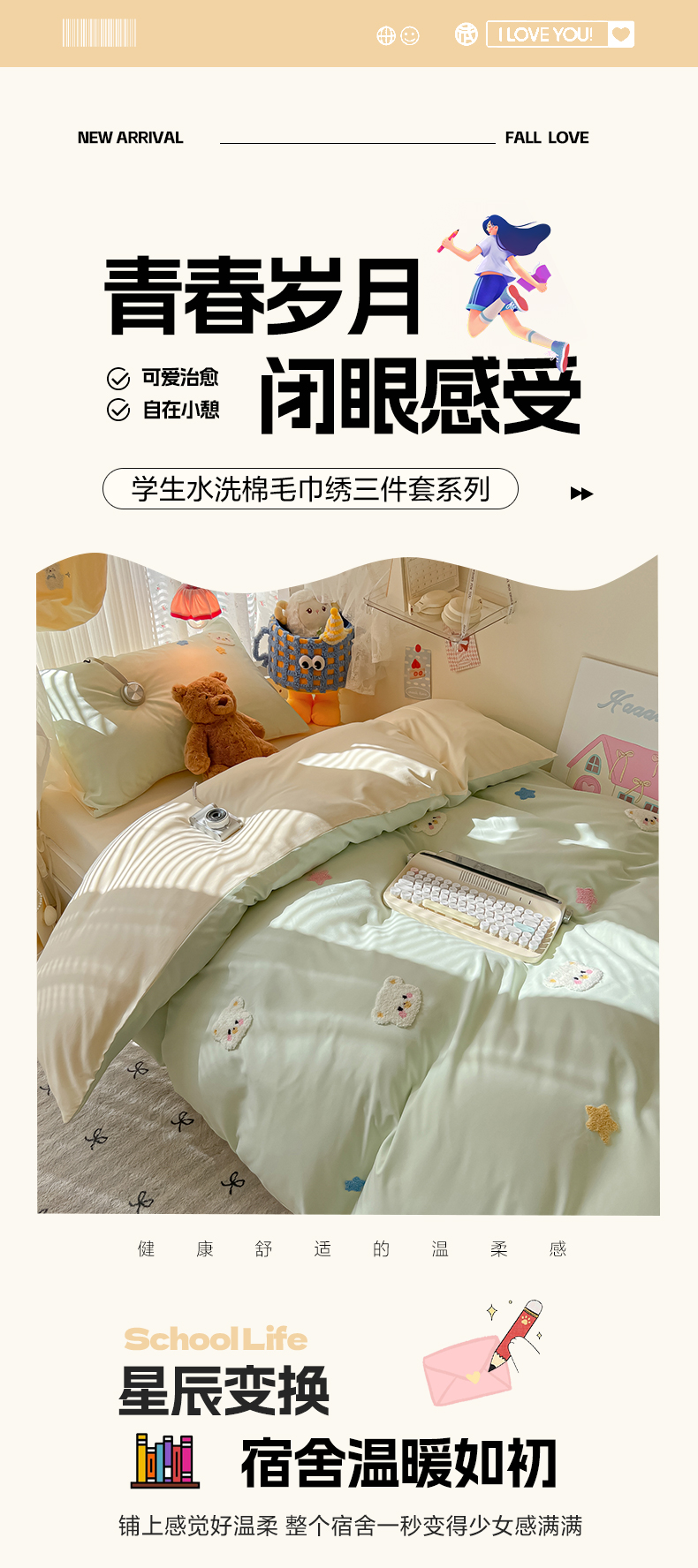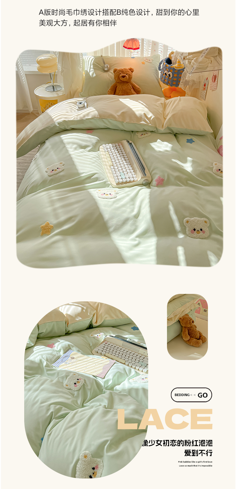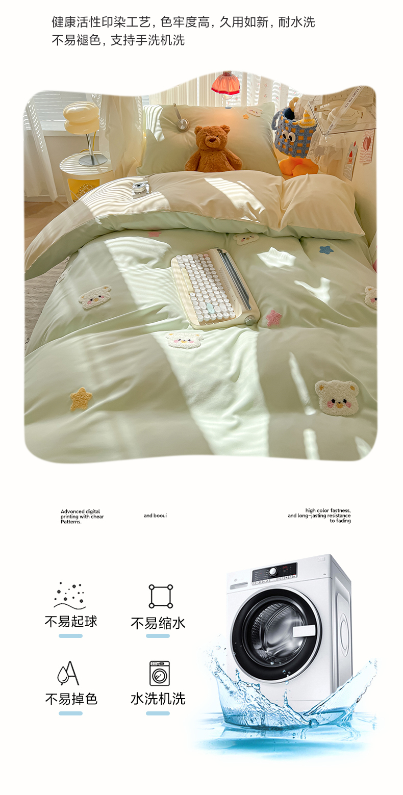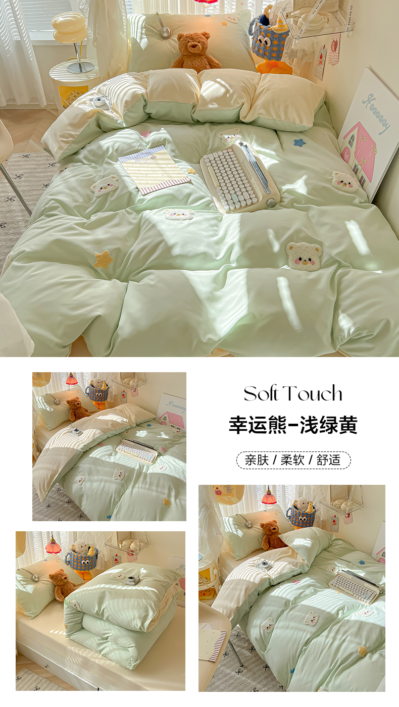 当前位置: 91家纺网 > 商品网购 > 床品套件 > 三件套 > 韩巢家纺 2025新款学生宿舍寝室高低床水洗棉毛巾绣学生季被套床单三件套-幸运熊 幸运熊浅绿黄
