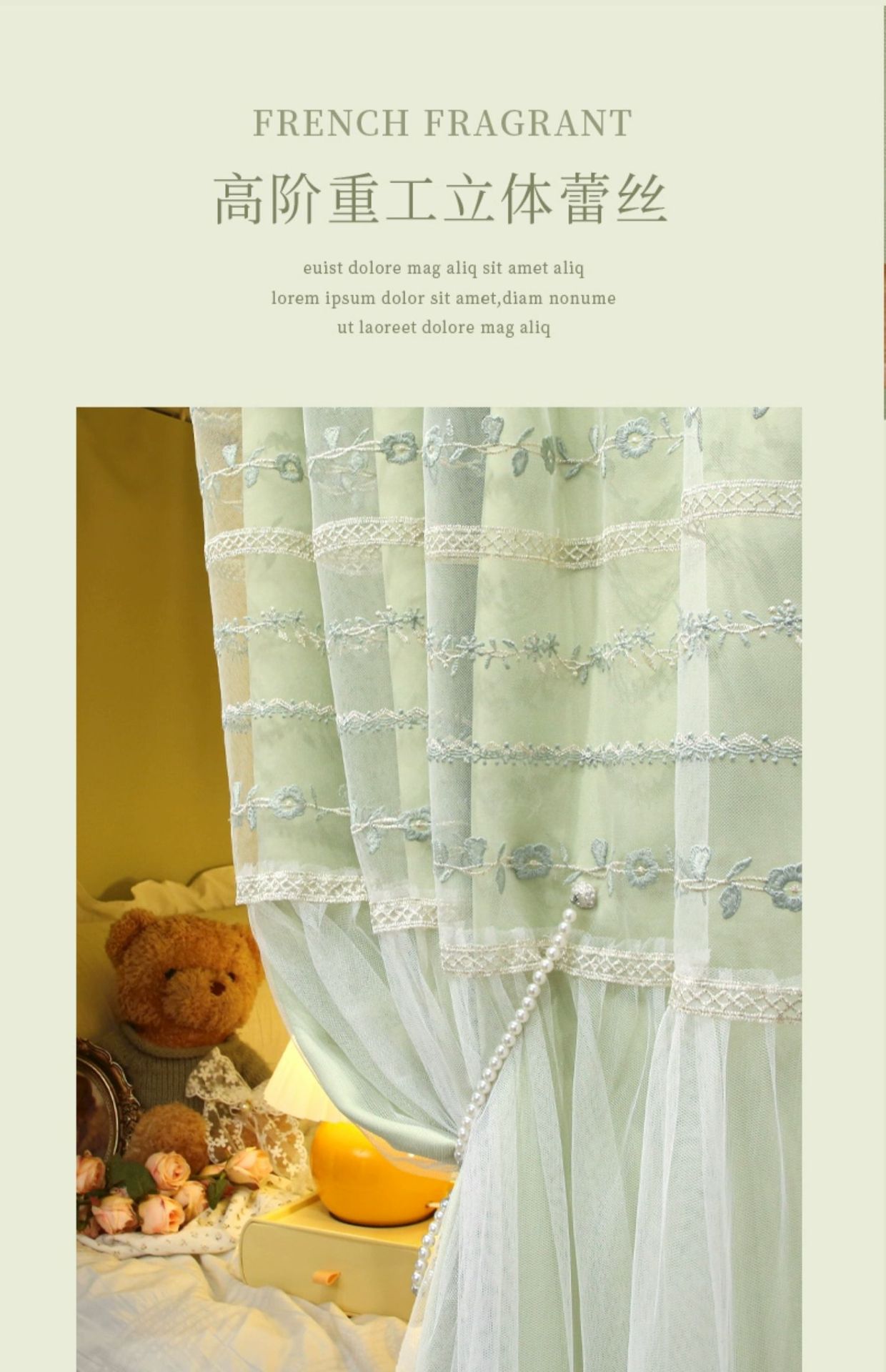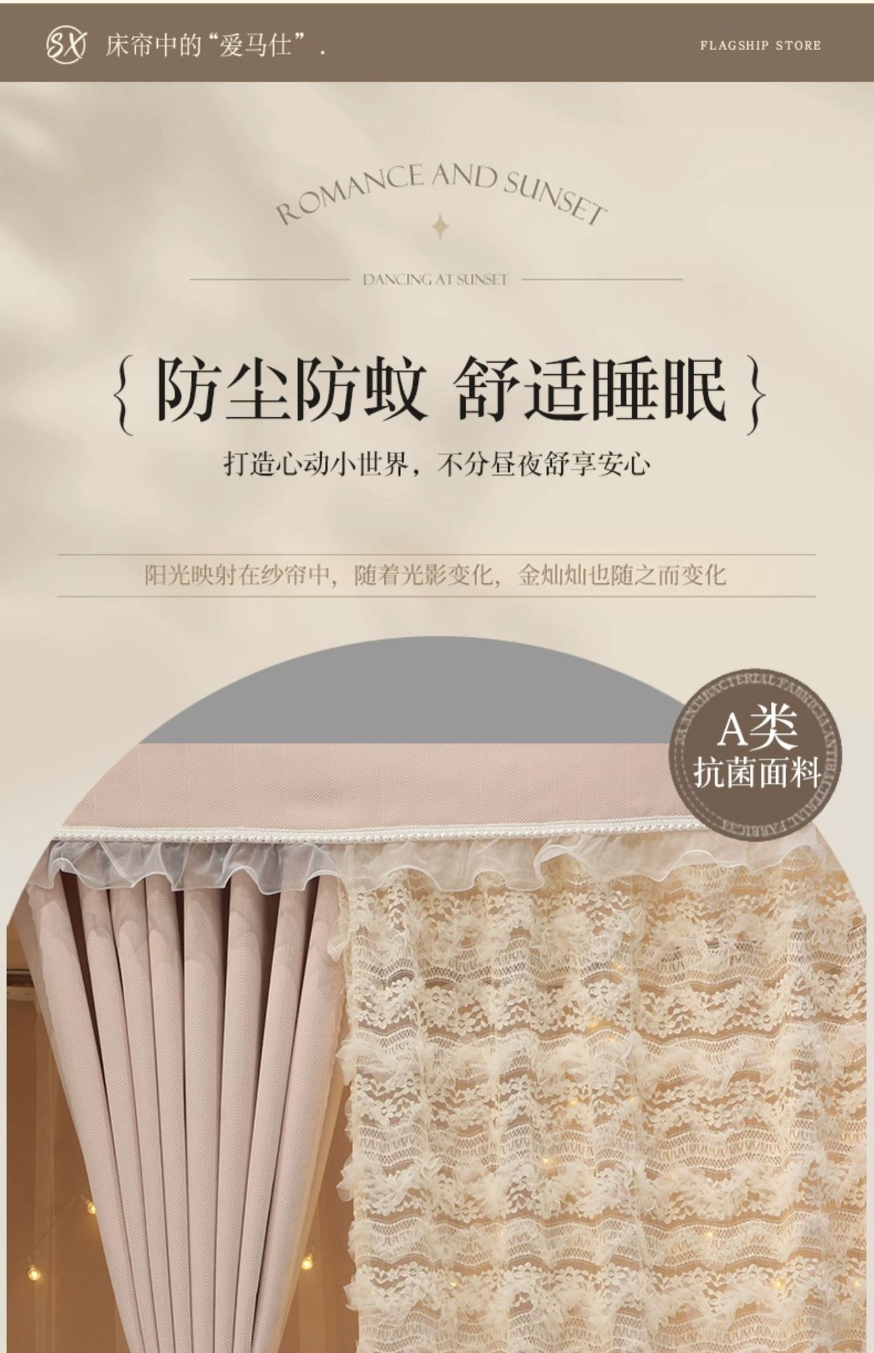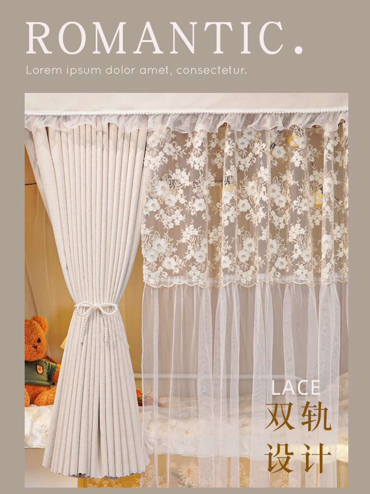 商品名称:(总)学生宿舍遮光帘 寝室床上下铺围窗帘布上铺法式拼接纱蚊帐一体式