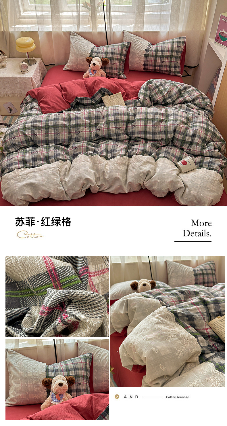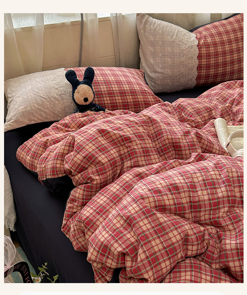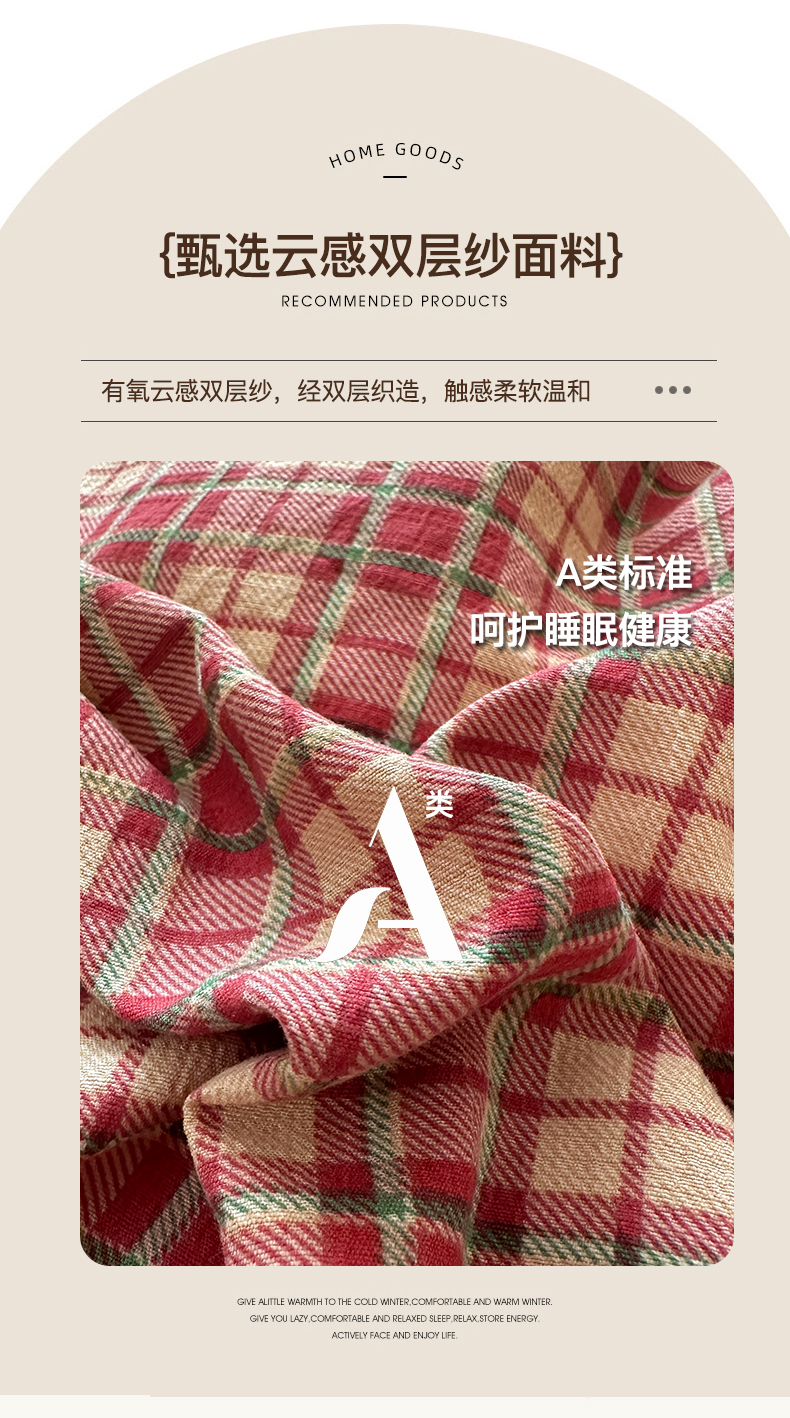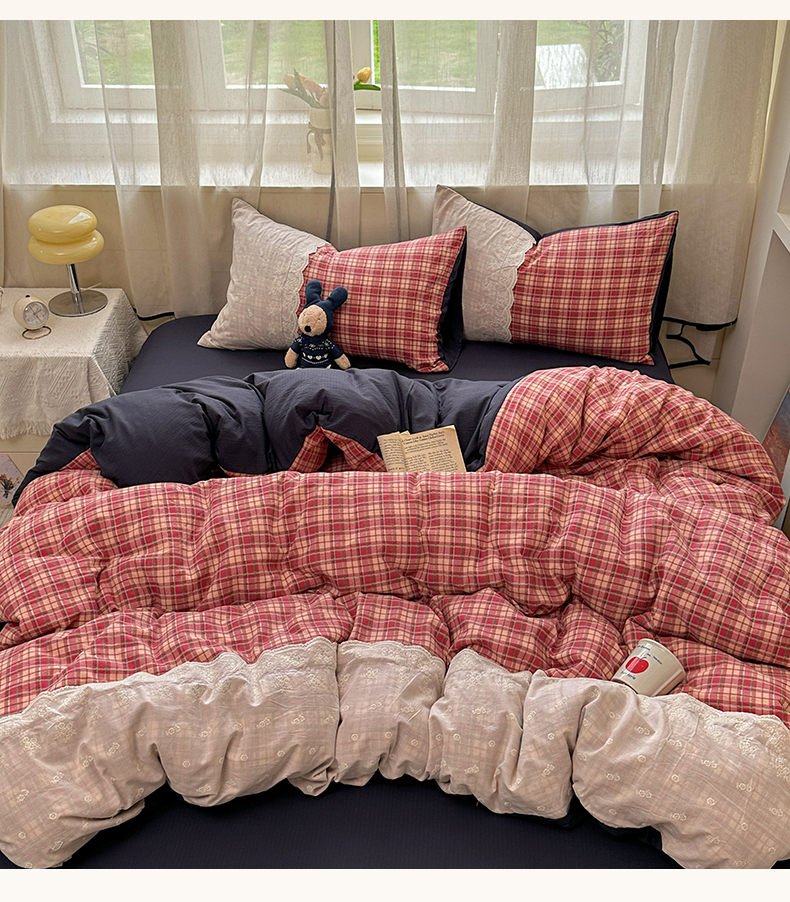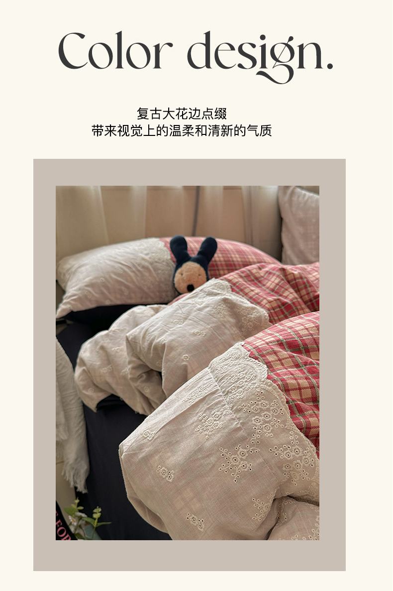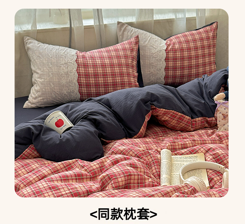 当前位置: 91家纺网 > 商品网购 > 床品套件 > 四件套 > 其它四件套 > 晚爱家纺(原晚安家居) 2025新款韩系少女风蕾丝花边四件套云感木棉双层纱-苏菲 苏菲·大红格