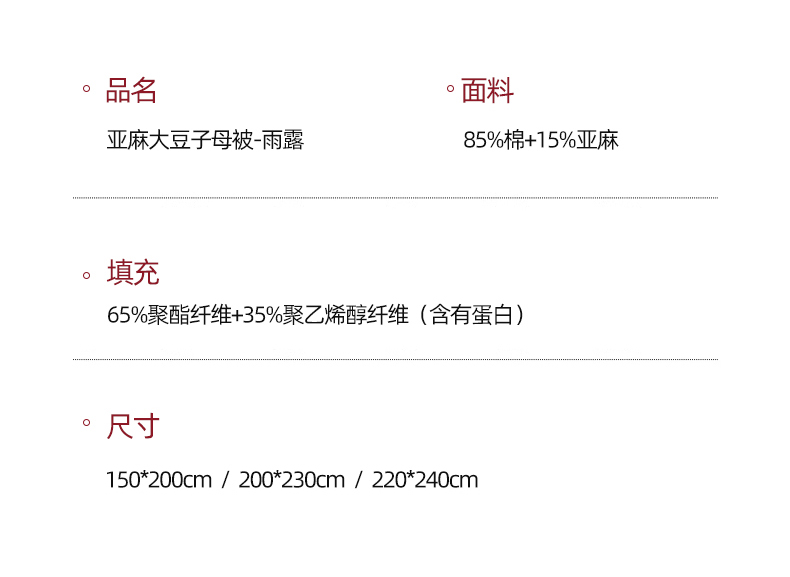 商品名称:(总)纪梵茜 2025新款雨露亚麻大豆被棉麻冬被李官奇正品全棉大豆子母被双胎被