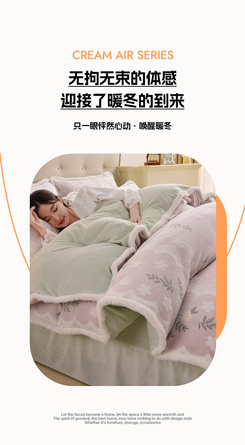 芯诗曼 2025直播高克重牛奶绒四件套法莱绒金貂貂狐保暖单被套 叶语,叶语