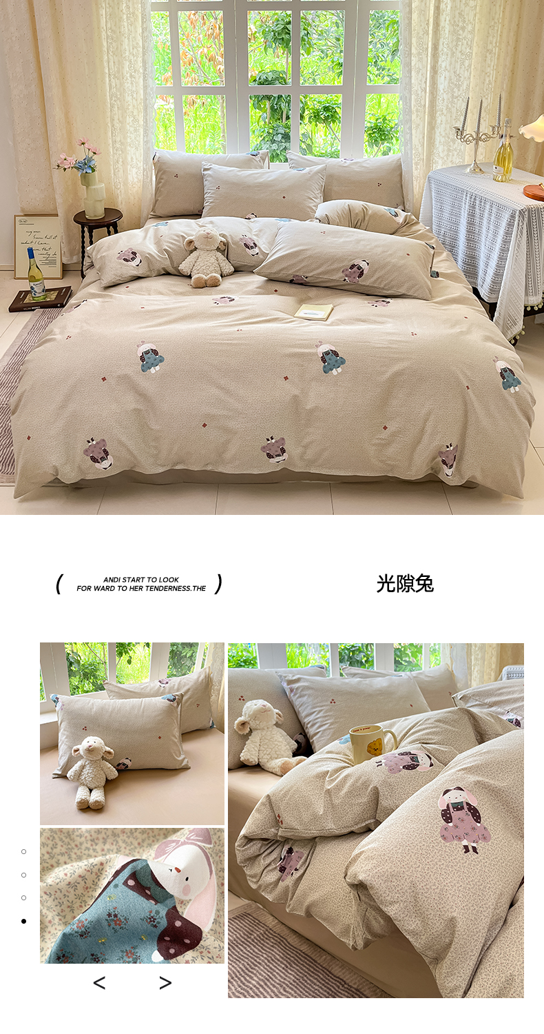 当前位置: 91家纺网 > 商品网购 > 床品套件 > 四件套 > 全棉普通四件套 > 柠馨 2025秋冬新款全棉印花四件套 光隙兔