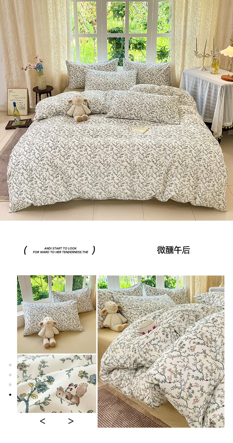 当前位置: 91家纺网 > 商品网购 > 床品套件 > 四件套 > 全棉普通四件套 > 柠馨 2025秋冬新款全棉印花四件套 微醺午后