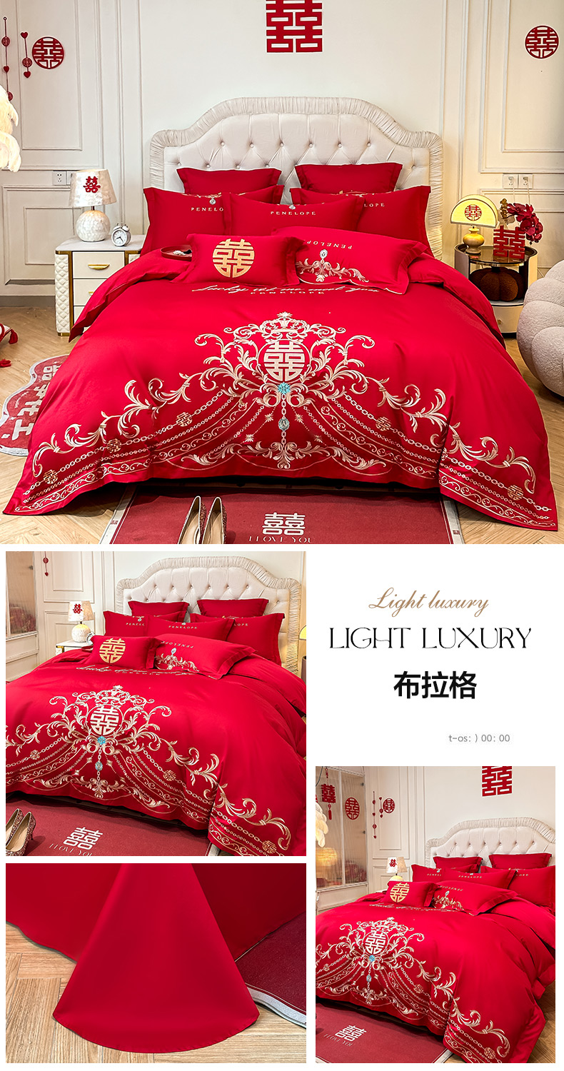 (总)欧乐蒂 2025新款全棉刺绣婚庆四件套,佳偶天成,龙凤和美,龙姿凤彩,玫瑰恋人,倾城之恋,双囍临门,甜蜜爱情,囍结良缘