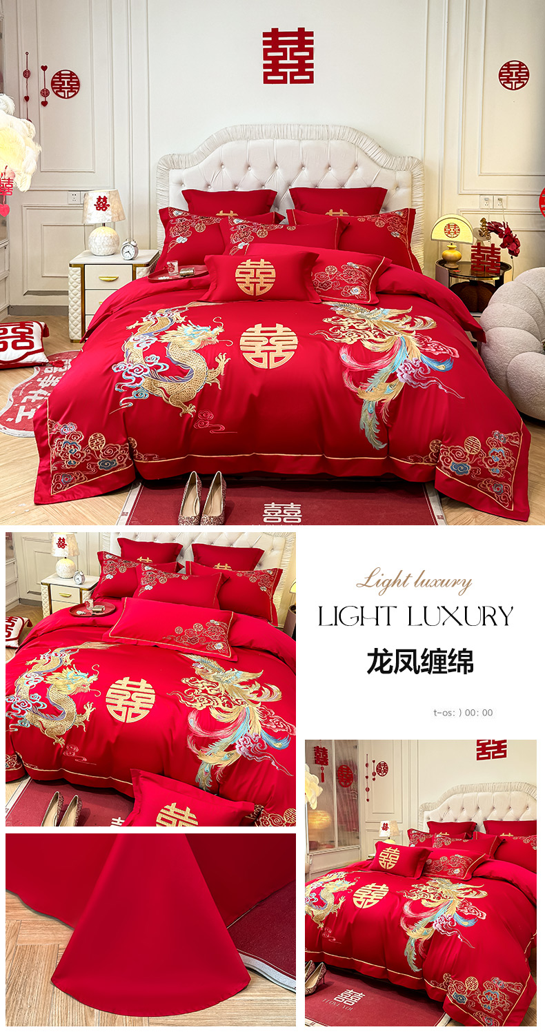 (总)欧乐蒂 2025冬季新品亲肤棉提花刺绣婚庆四件套,龙凤双喜,喜事花开