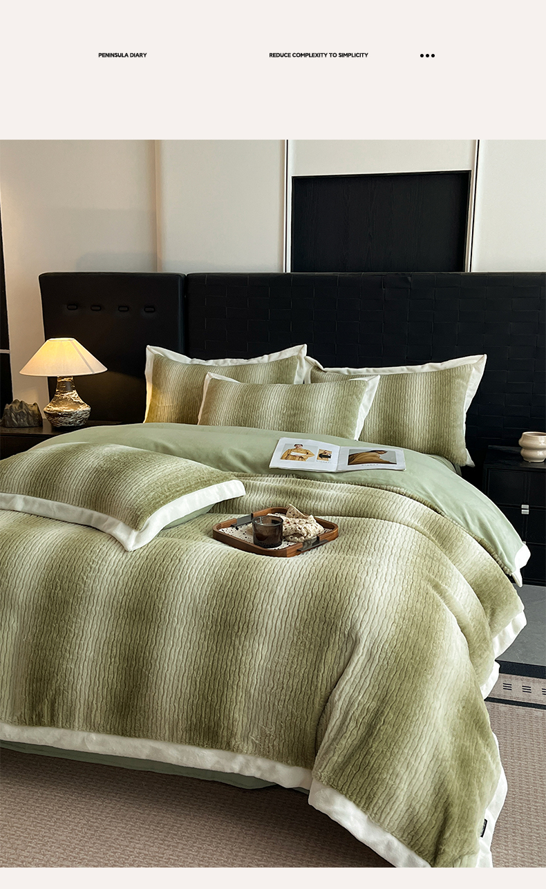 商品名称:羽梦家纺 2025秋冬新品260克加厚全消光貂狐绒工艺款超保暖四件套 九尾狐-抹茶