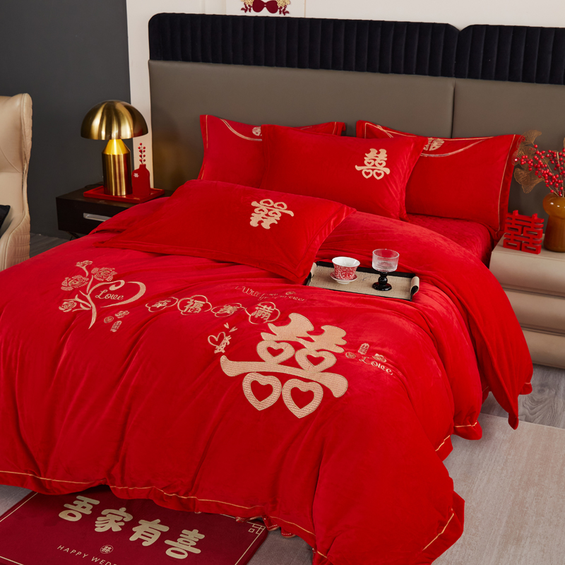 青竹苑 2025新款婴儿绒刺绣婚庆四件套 幸福美满