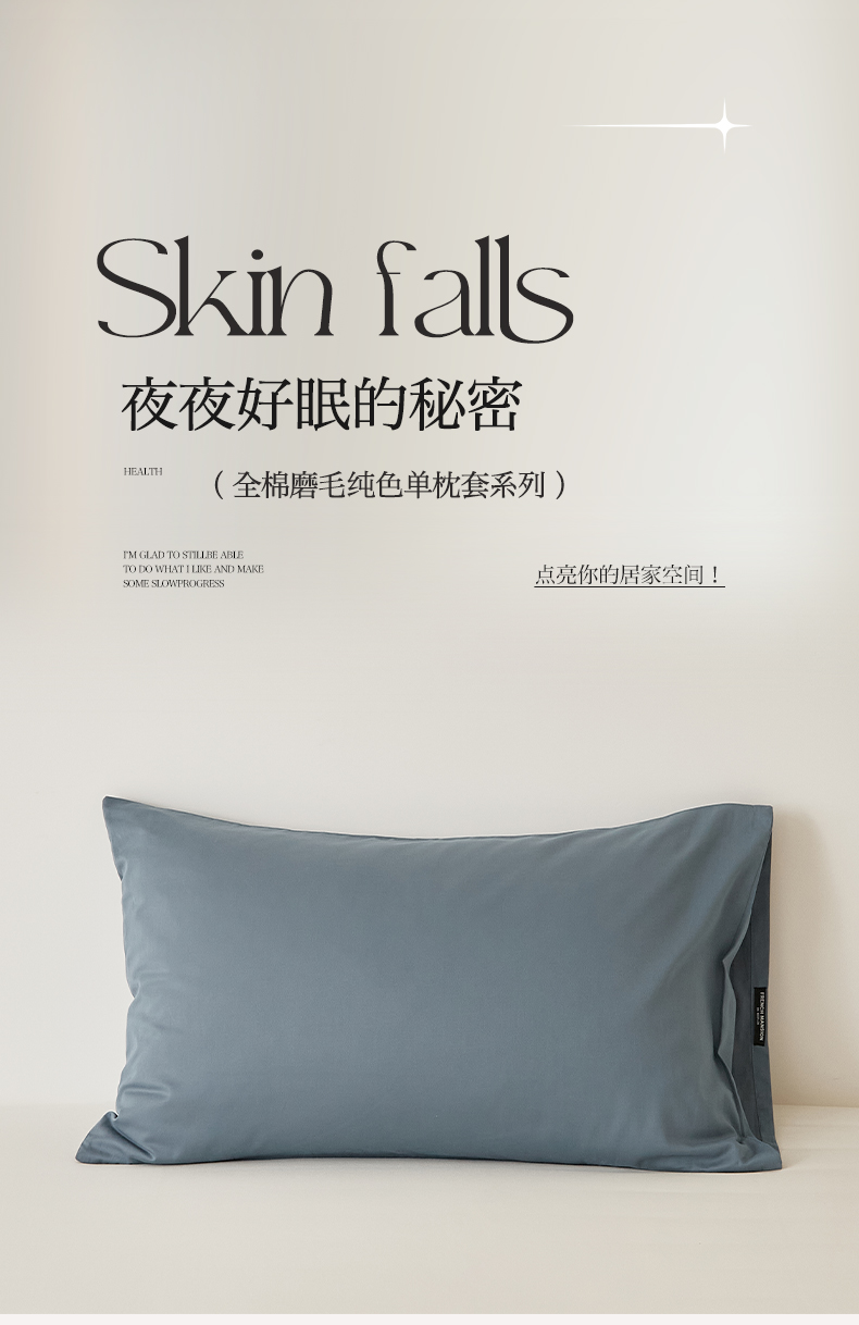 EH家居 2025新款全棉磨毛纯色单枕套-云栖系列 云栖-南菲蓝
