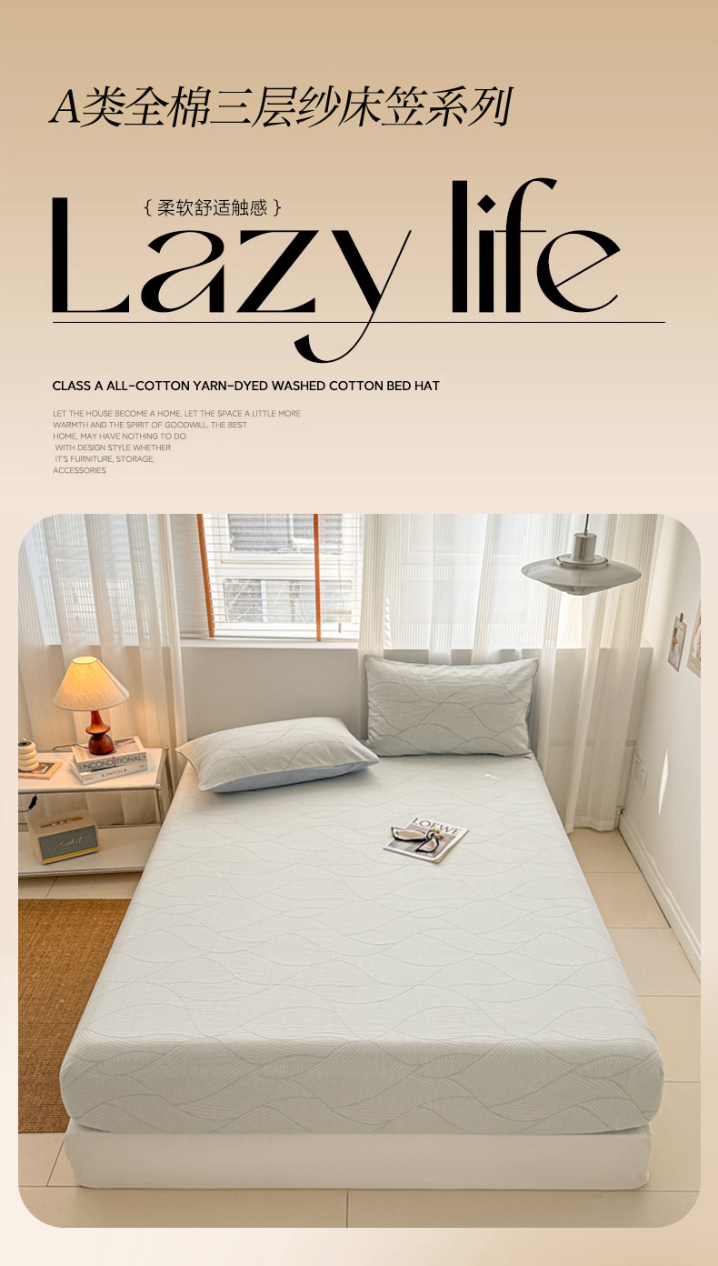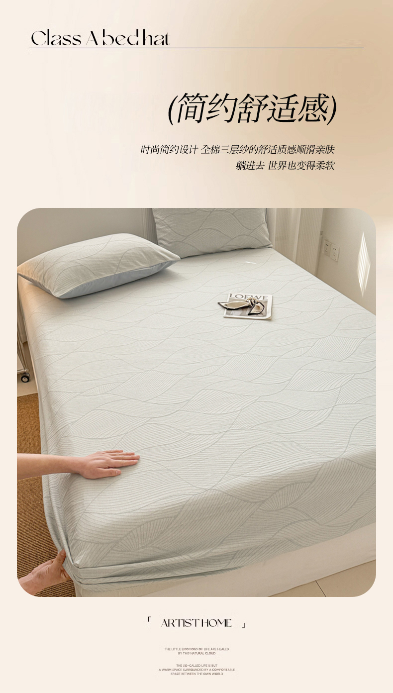 • 91家纺网 家纺一手货源 找家纺 眠博士 2025新款全棉纯棉三层纱床笠单品床笠床笠单件 三层纱床笠-曲线-蓝
