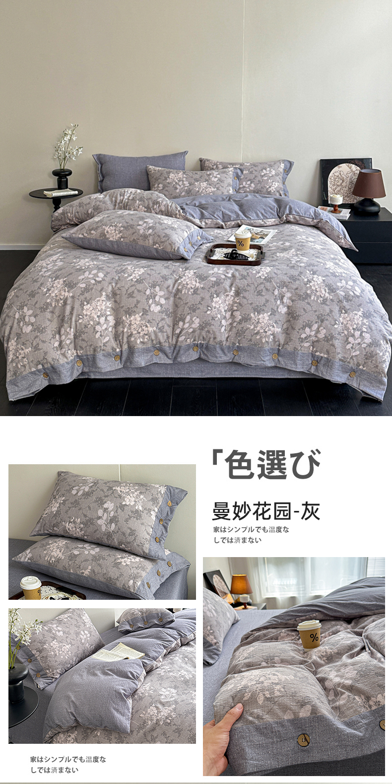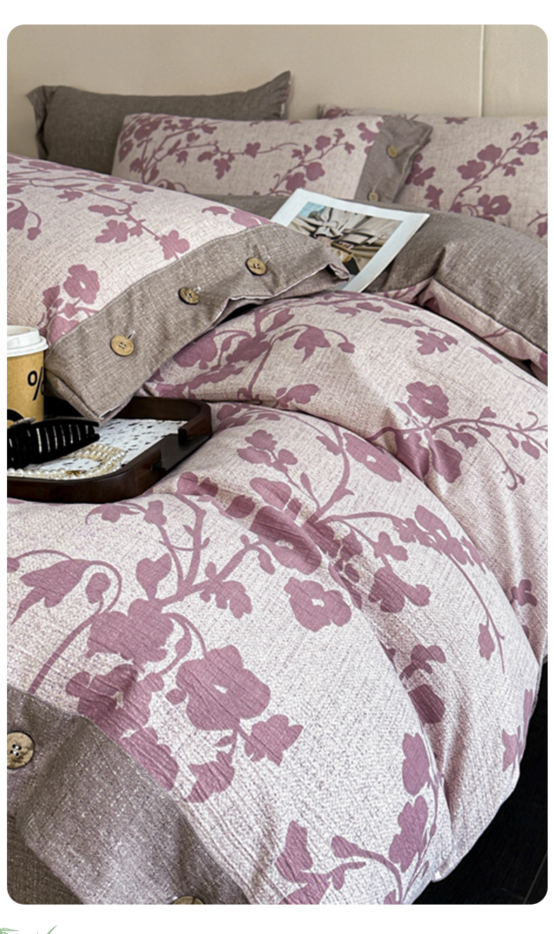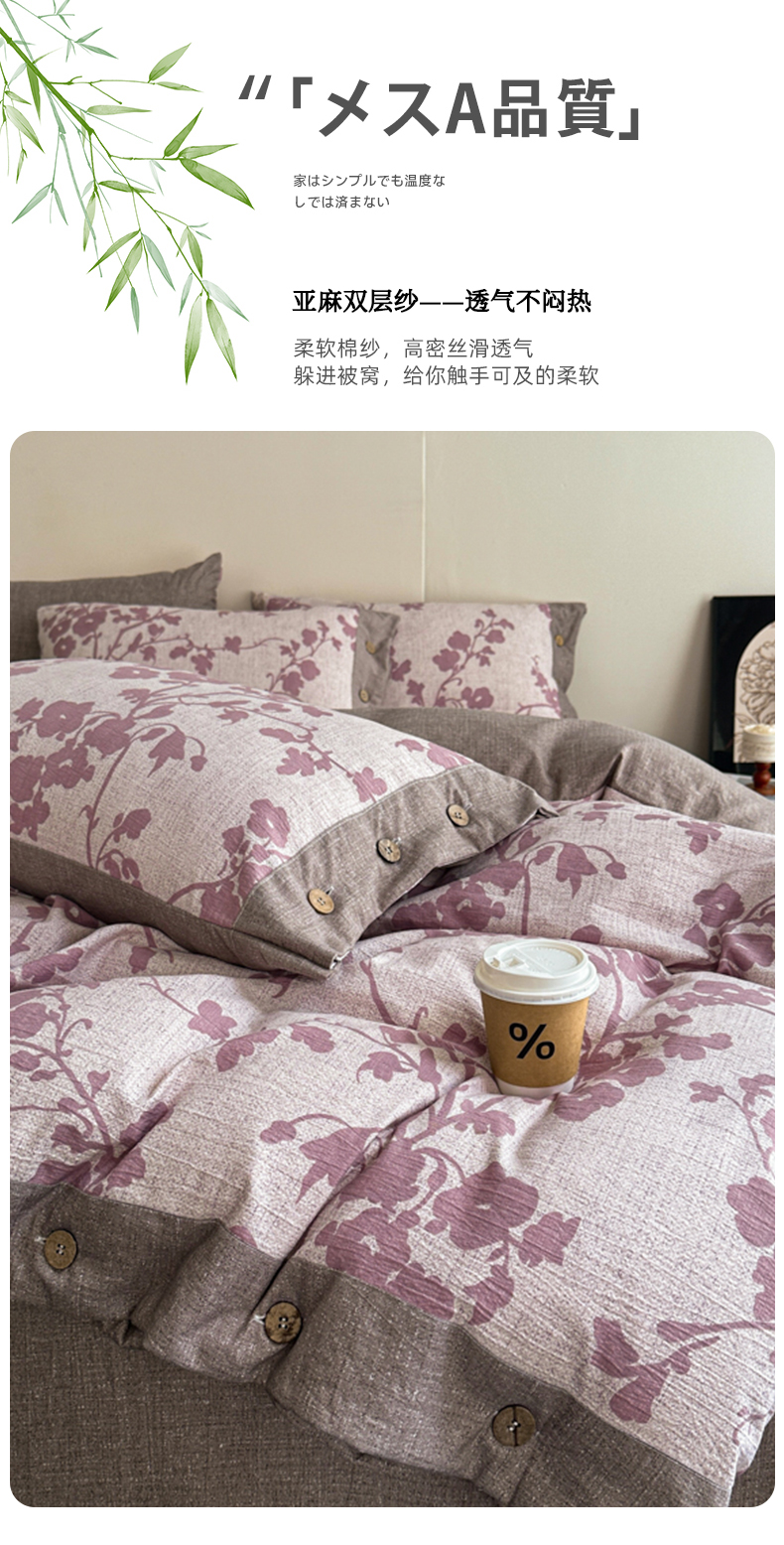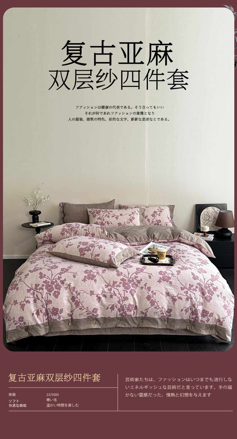 (总)七里香 2025秋冬新款A类加厚高克重亚麻复古风双层纱印花四件套,一叶,城堡花园,浮绘花影,格颂,花之舞,露娜,曼妙花园-灰,曼妙花园-紫,梅花颂,夕颜