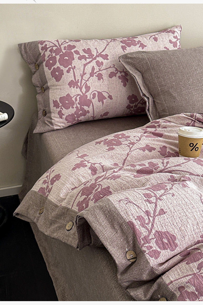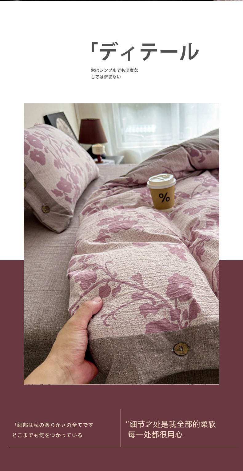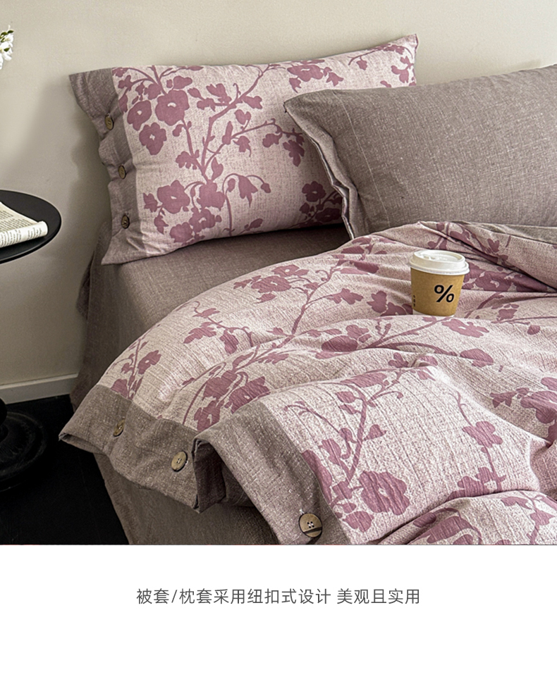 (总)七里香 2025秋冬新品A类加厚高克重原麻复古风亚麻皱皱纱印花四件套,布袋装组合图,粉黛,花蕾-咖,花蕾-绿,金枝玉叶,锦簇,盛夏,素锦,向阳花开,一抹香,绽放