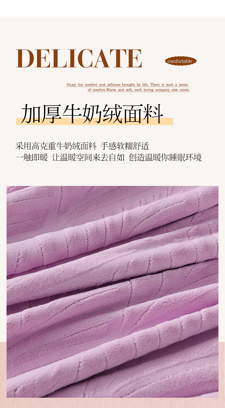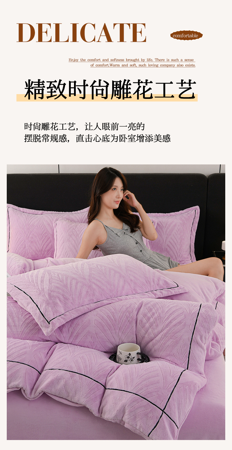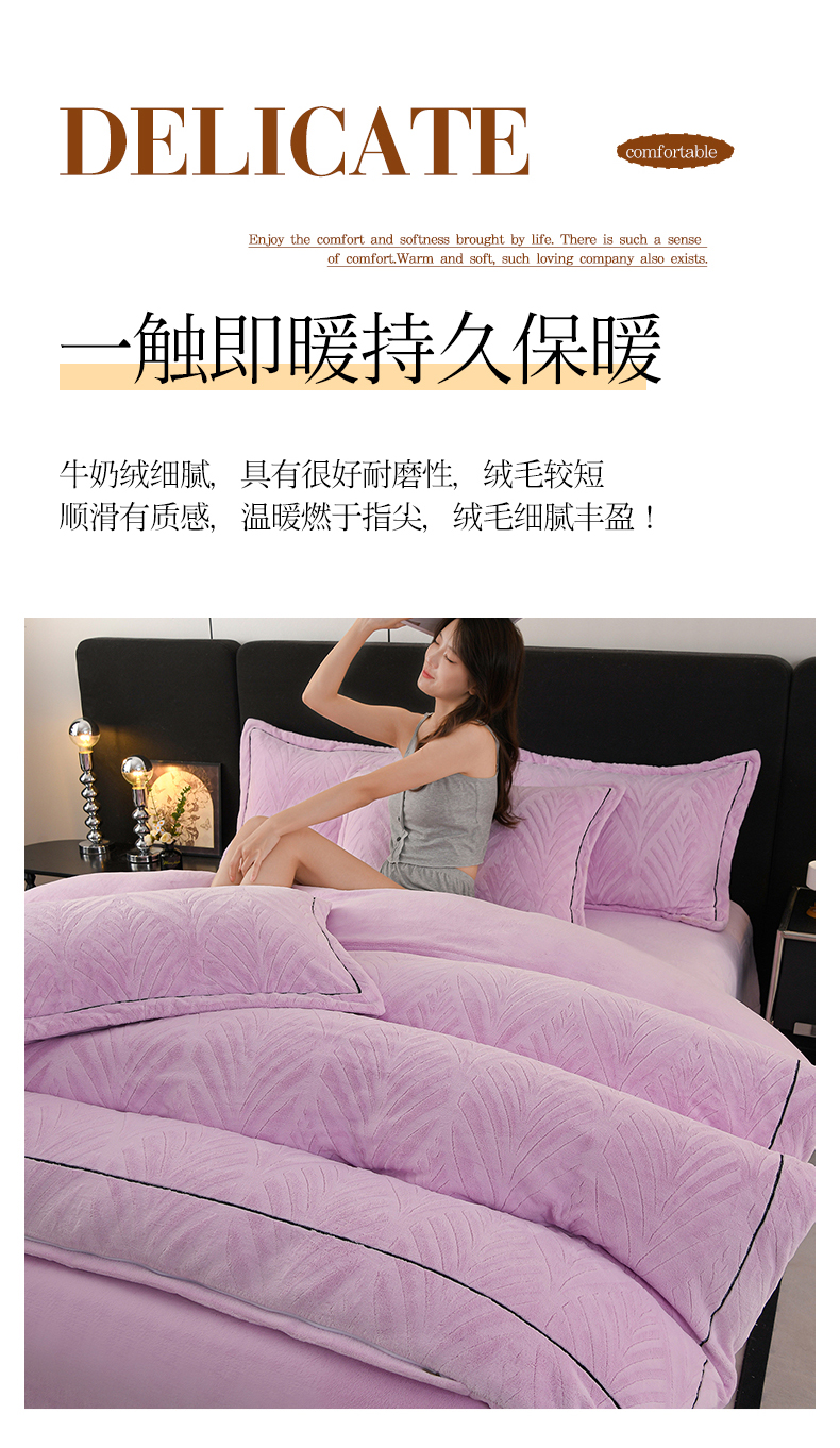商品名称:紫月轩家纺 2025新款牛奶绒雕花四件套香槟-紫