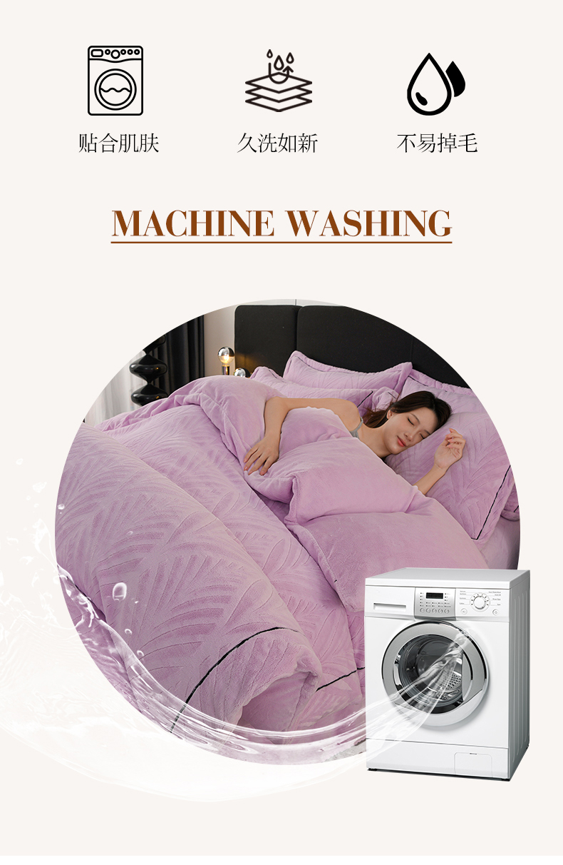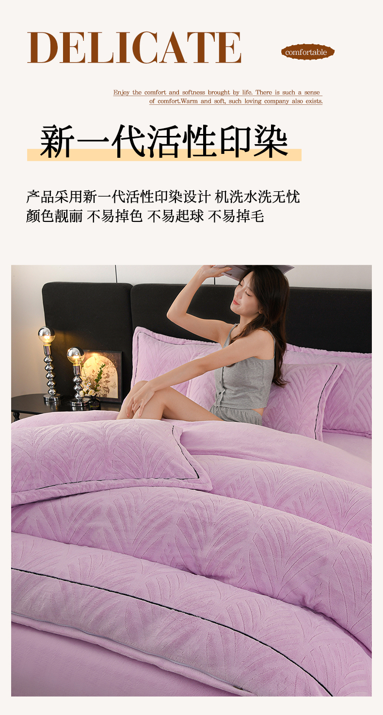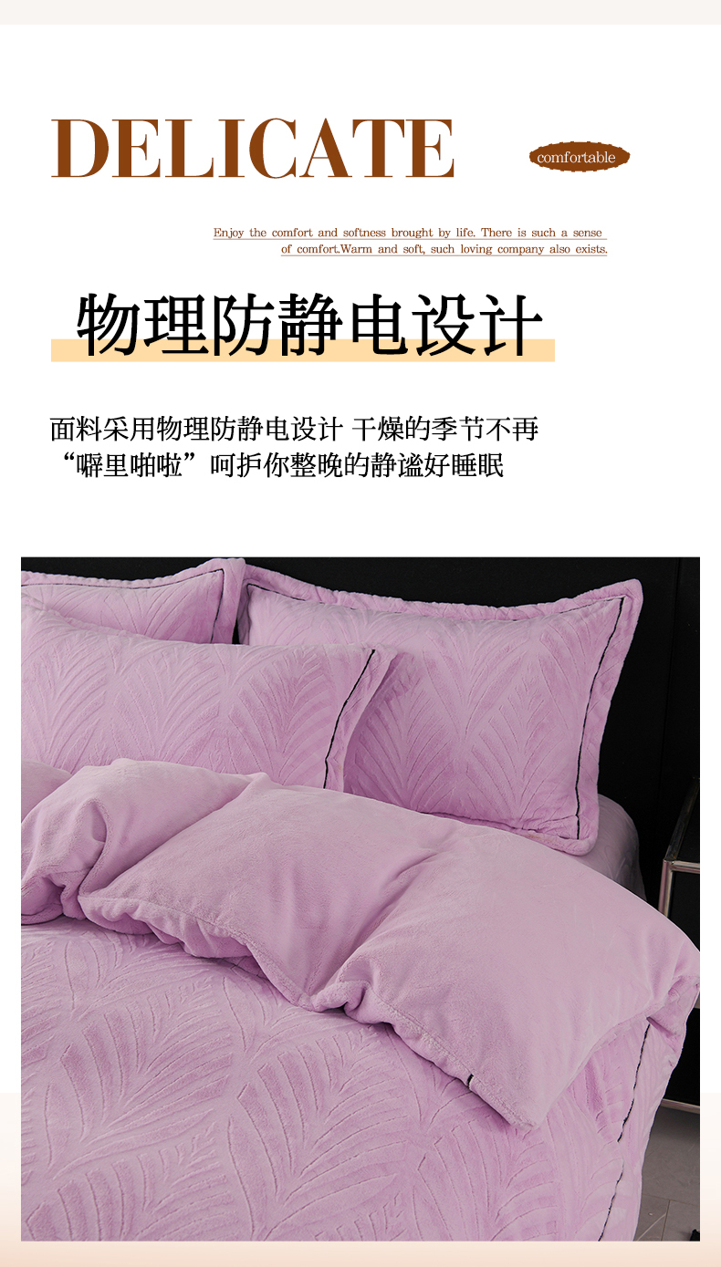 商品名称:紫月轩家纺 2025新款牛奶绒雕花四件套香槟-紫