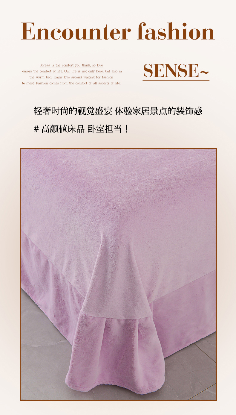 (总)紫月轩 2025新款高克重白拉毛花边水晶绒四件套,粉玉,红豆沙,灰绿,酒红,浅紫,深灰,艳玫红,银灰,中蓝,紫罗兰