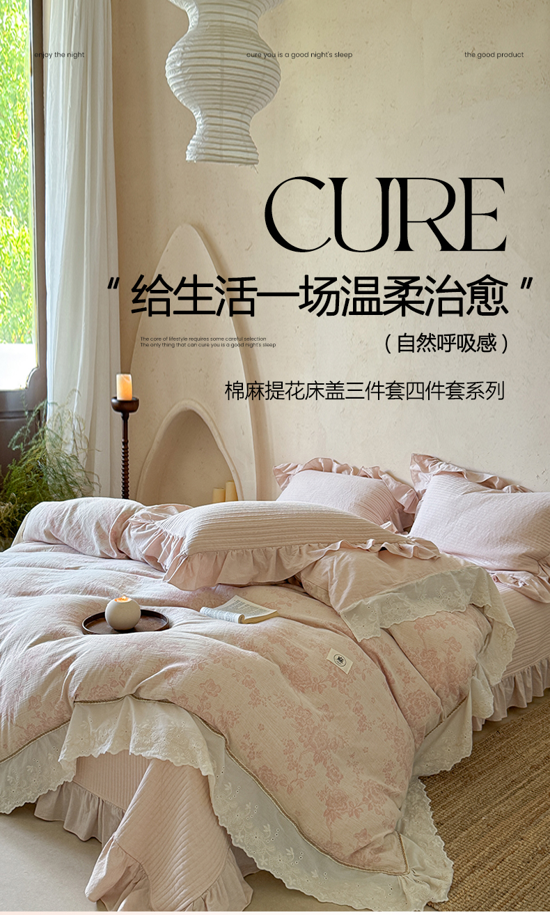 漫调家纺 2025新款棉麻提花单床盖-棉麻絮语 棉麻絮语-粉