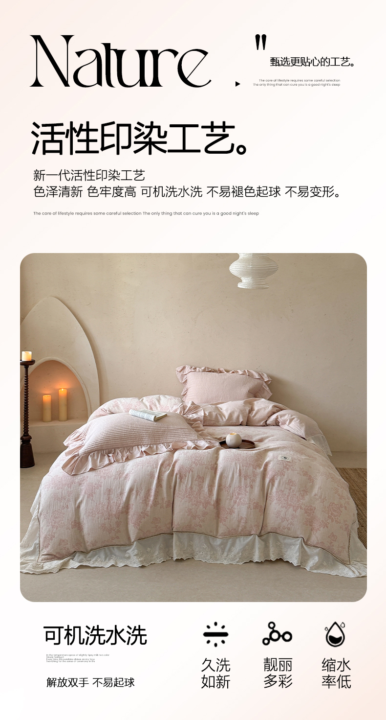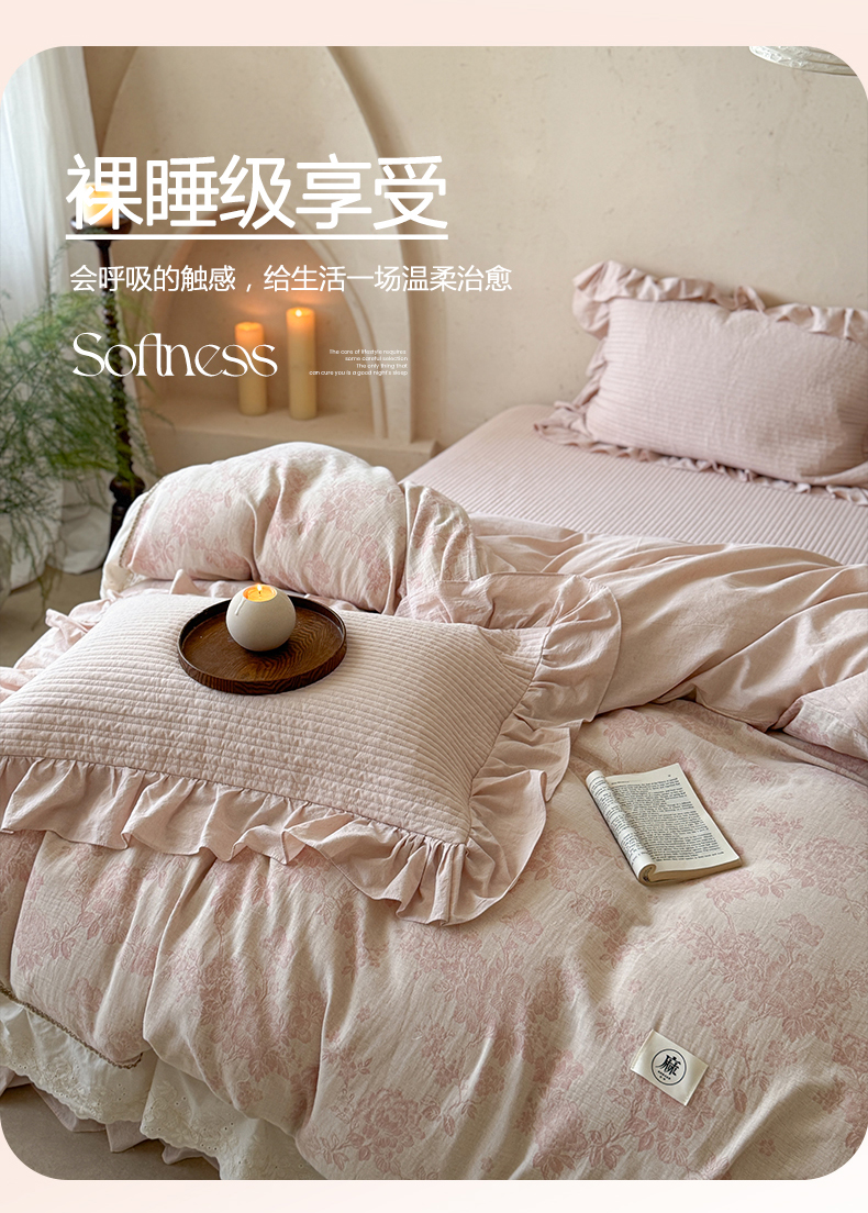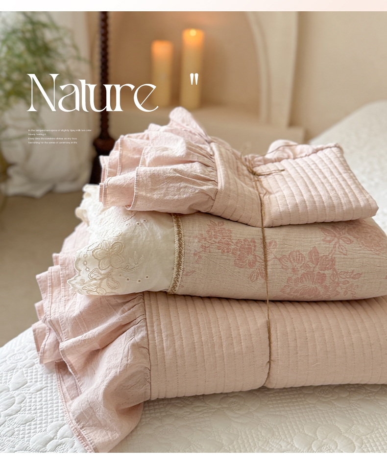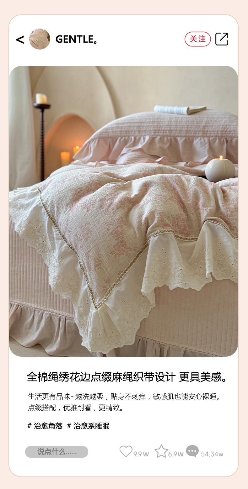 (总)漫调家纺 2025新款全棉双层纱与绒床盖三件套,黛紫缀花,粉雾枝蔓,玫瑰故事,青芜点绯,轻烟凝灰