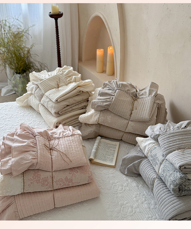 (总)漫调家纺 2025新款繁星绗缝夏被 复古风实拍,繁星白,繁星粉,繁星灰,繁星咖,繁星绿,繁星杏