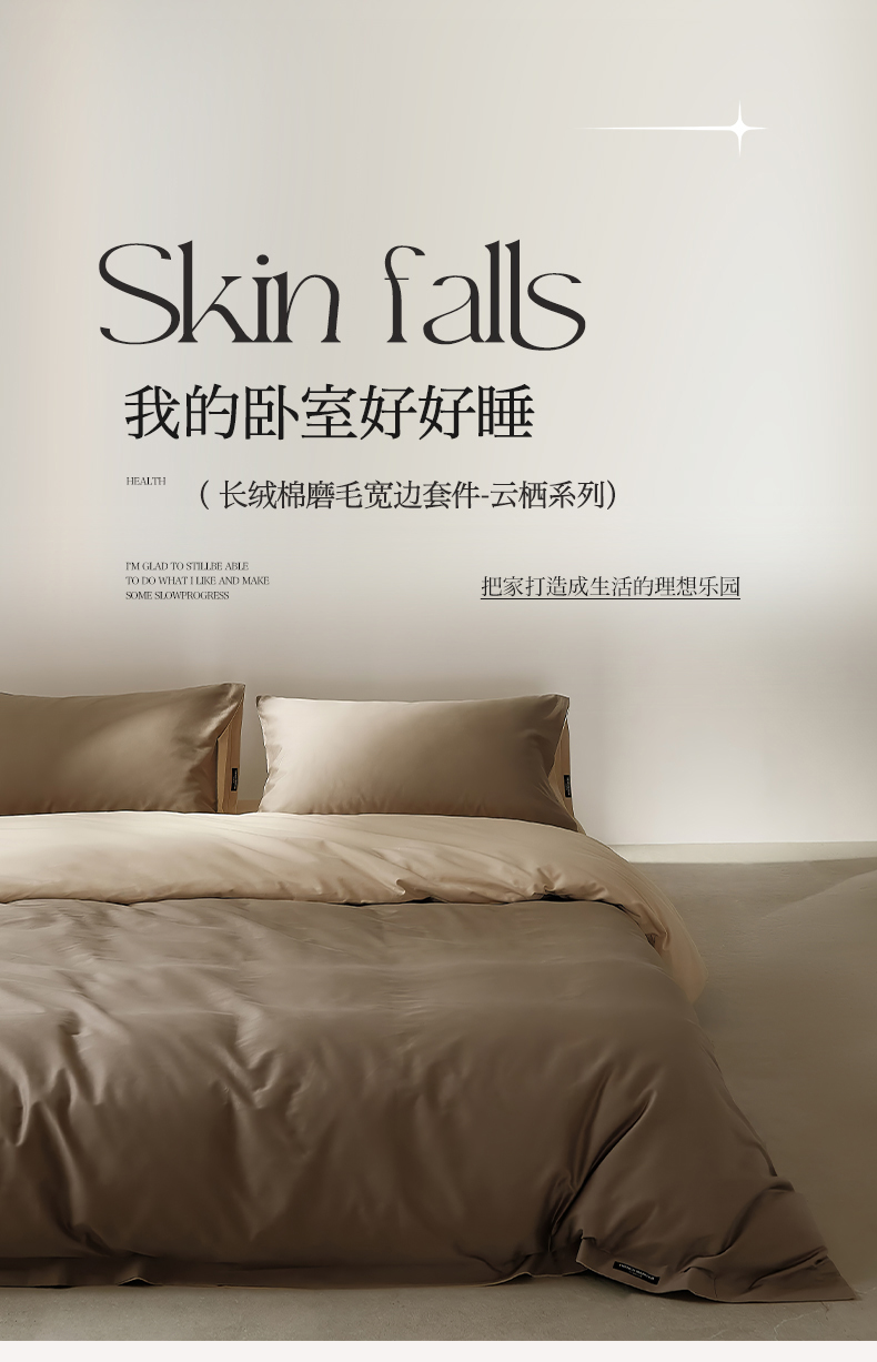 当前位置: 91家纺网 > 商品网购 > 床品套件 > 四件套 > 全棉活性四件套 > EH家居 2025新款100S长绒棉小宽边磨毛四件套--云栖系列 摩卡慕斯