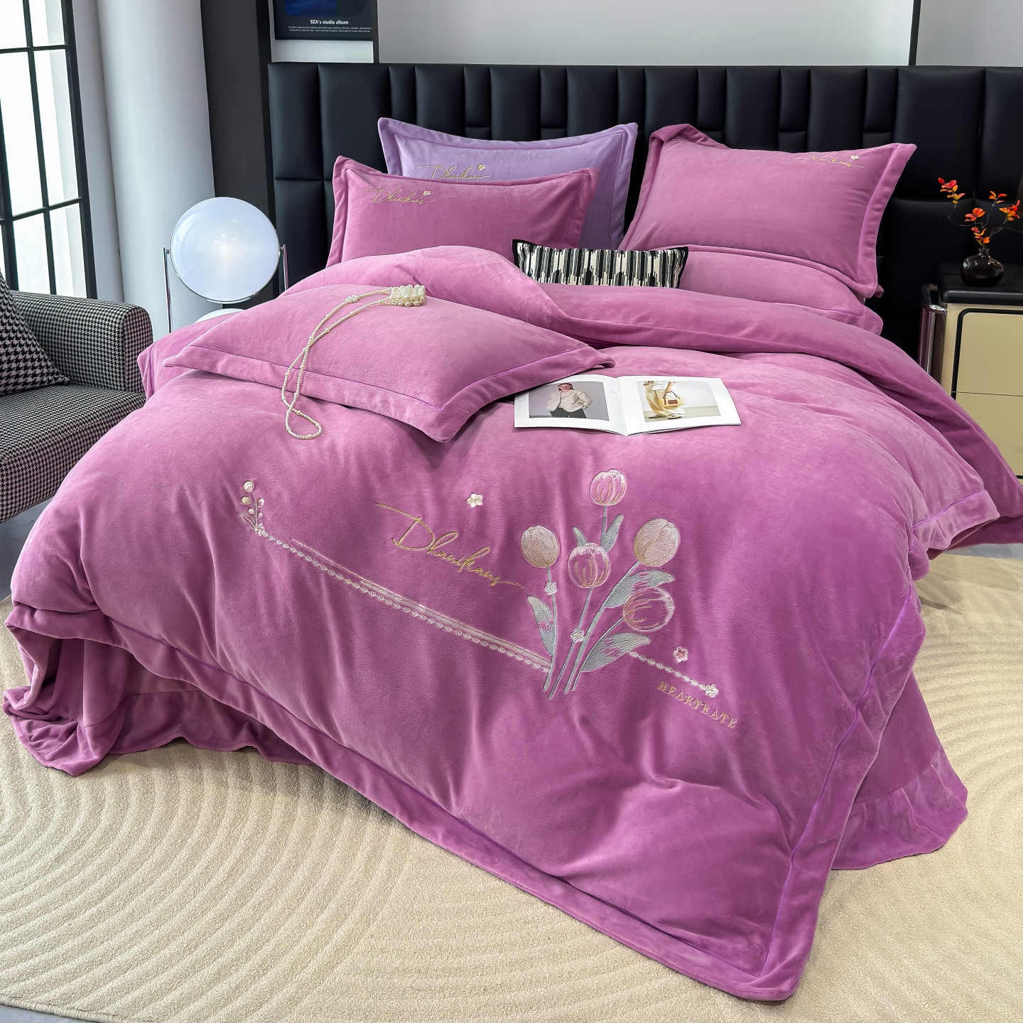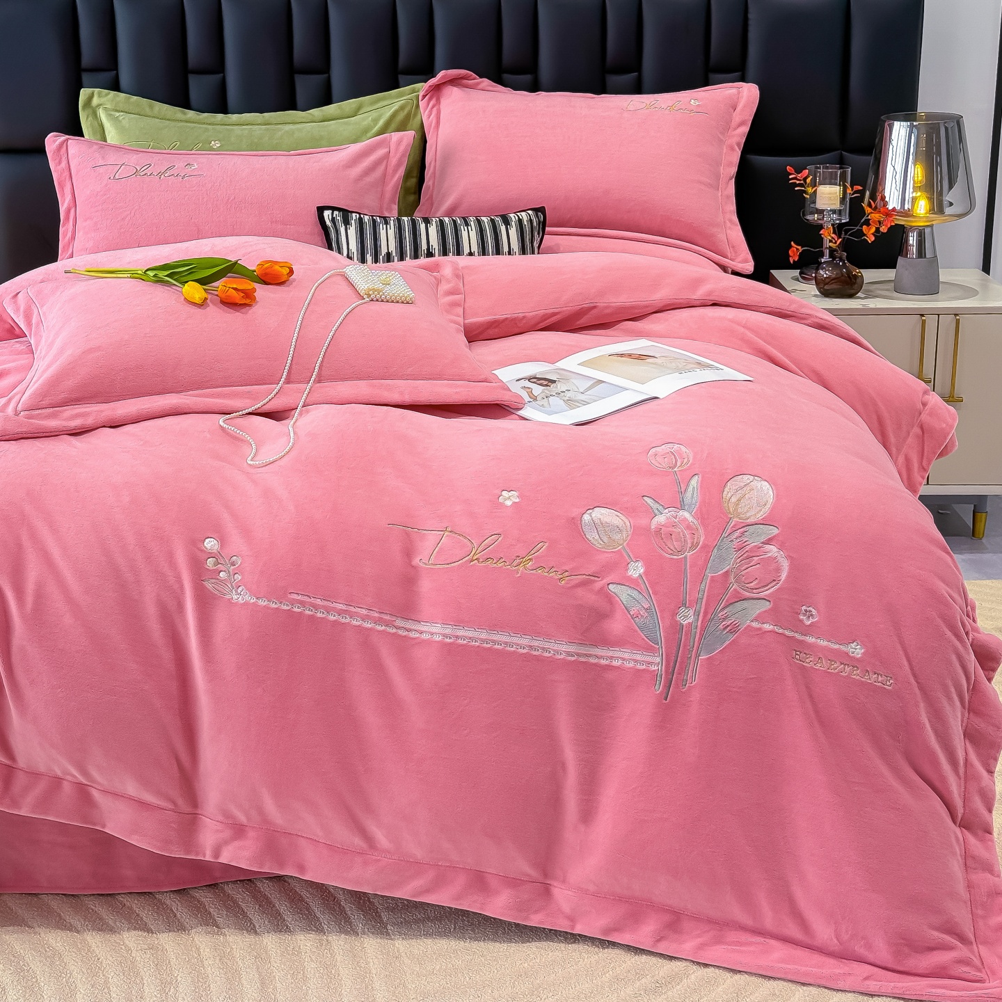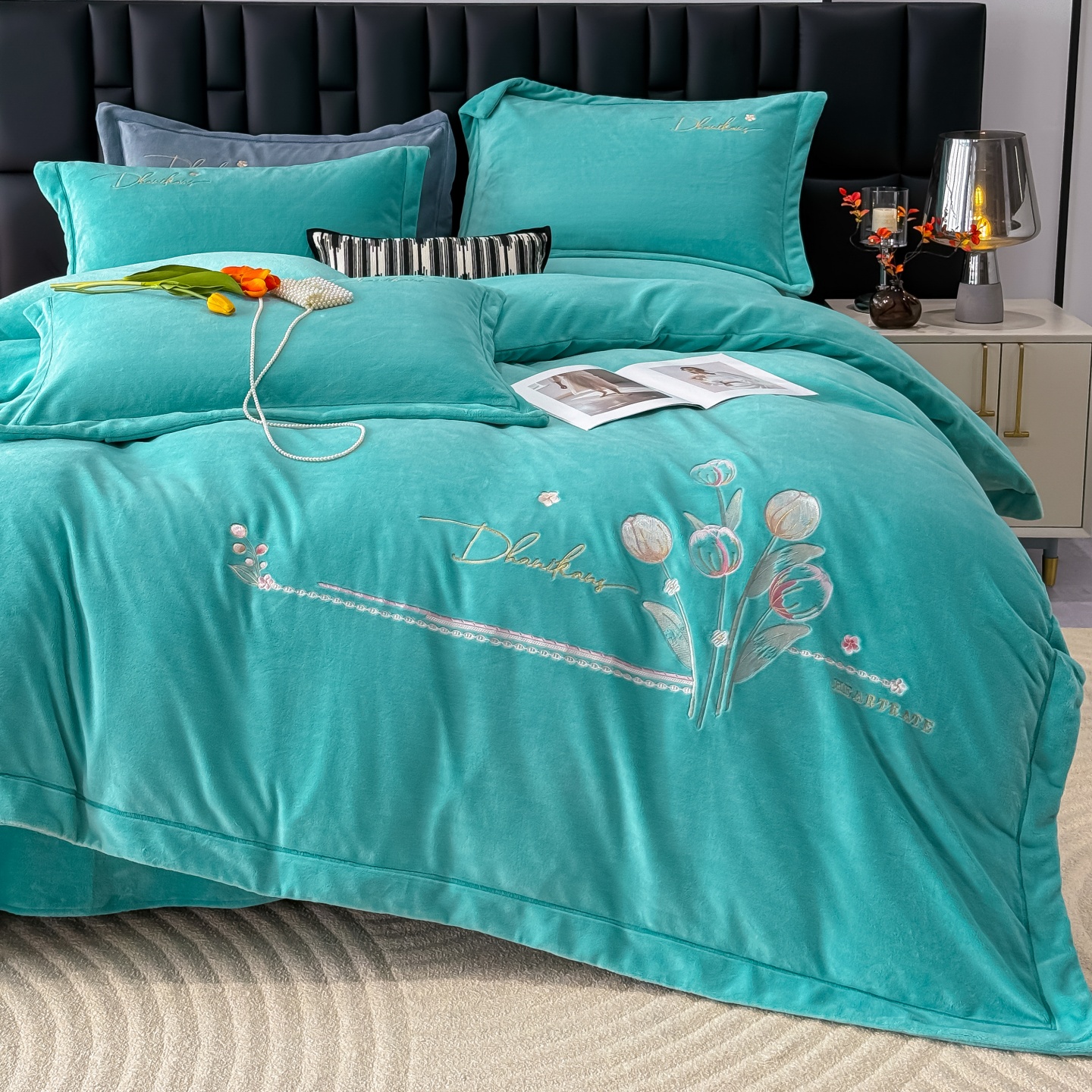 优姿家纺 2025新款10斤牛奶绒宽边绣花保暖四件套-郁金花香 郁金花香-天兰
