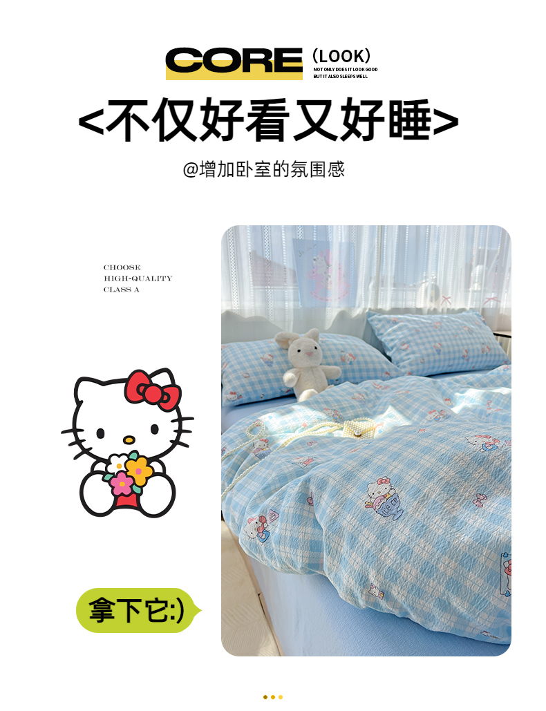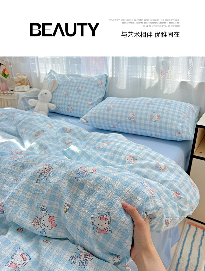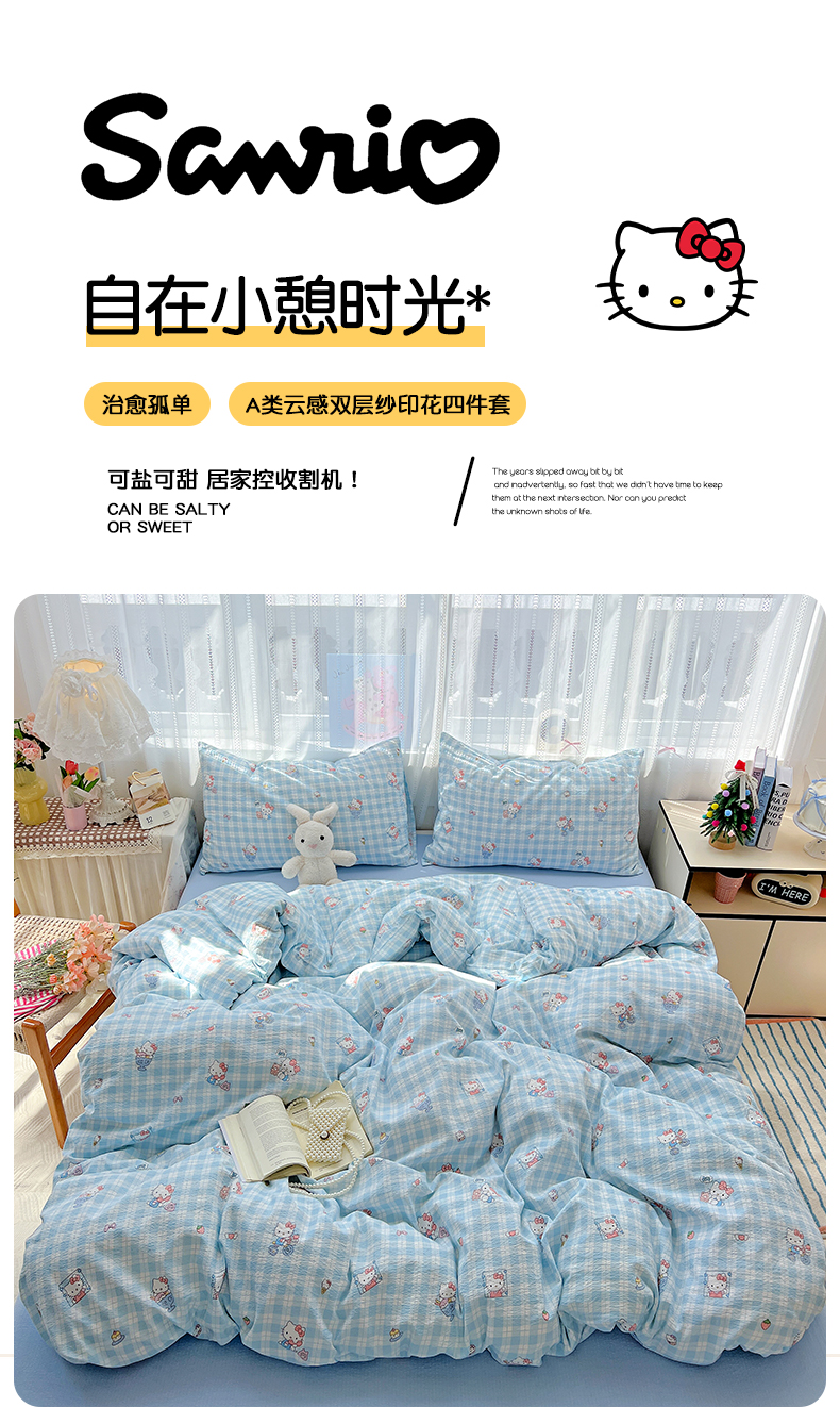 当前位置: 91家纺网 > 商品网购 > 床品套件 > 四件套 > 其它四件套 > 奈颜 2025新款三丽鸥爆款云感双层纱印花四件套学生宿舍三件套-含防伪吊牌-叠拍图 格子KT-浅蓝