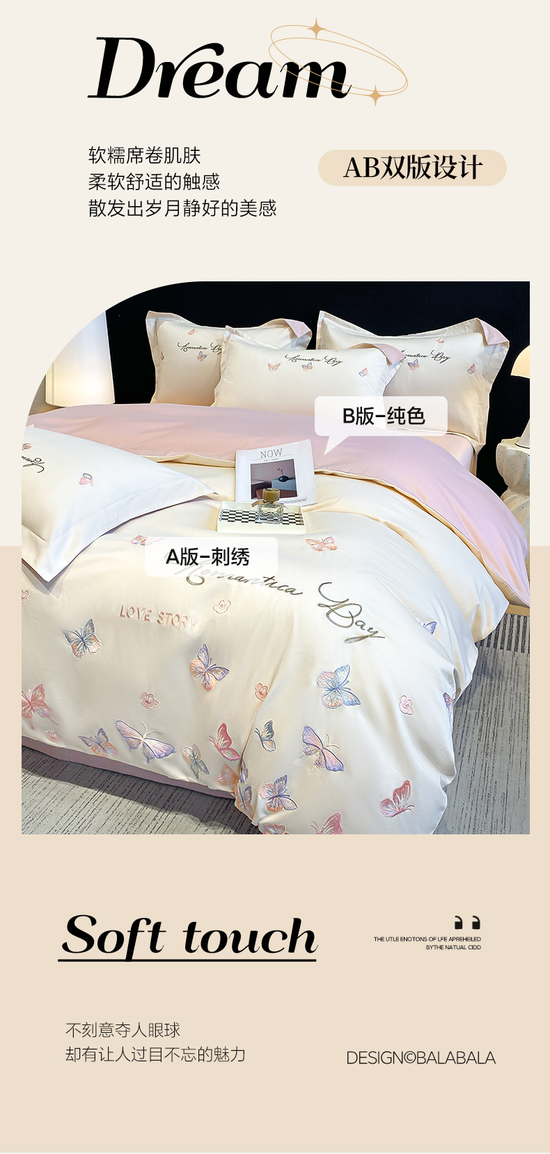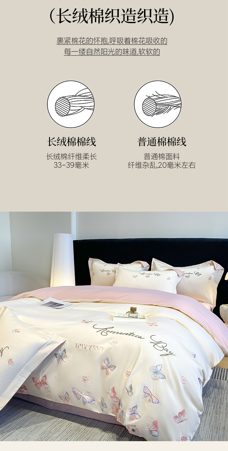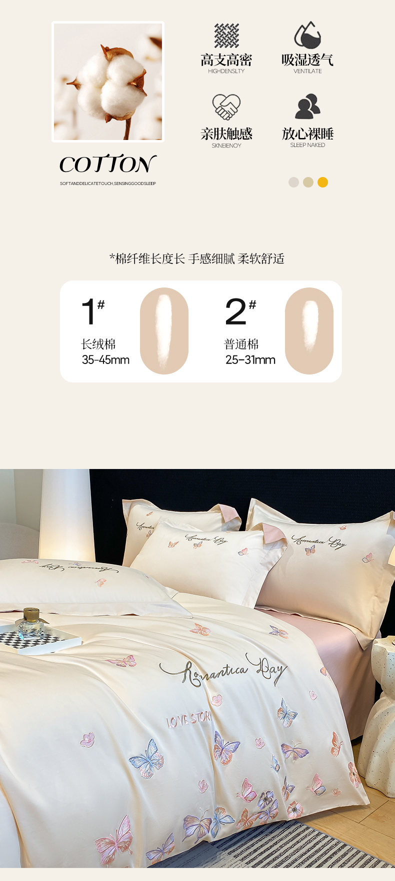 (总)桃园 新款纯棉全棉长绒棉刺绣绣花高端礼盒蝶梦园系列四件套,白粉,白紫,轻奢粉,飘蓝