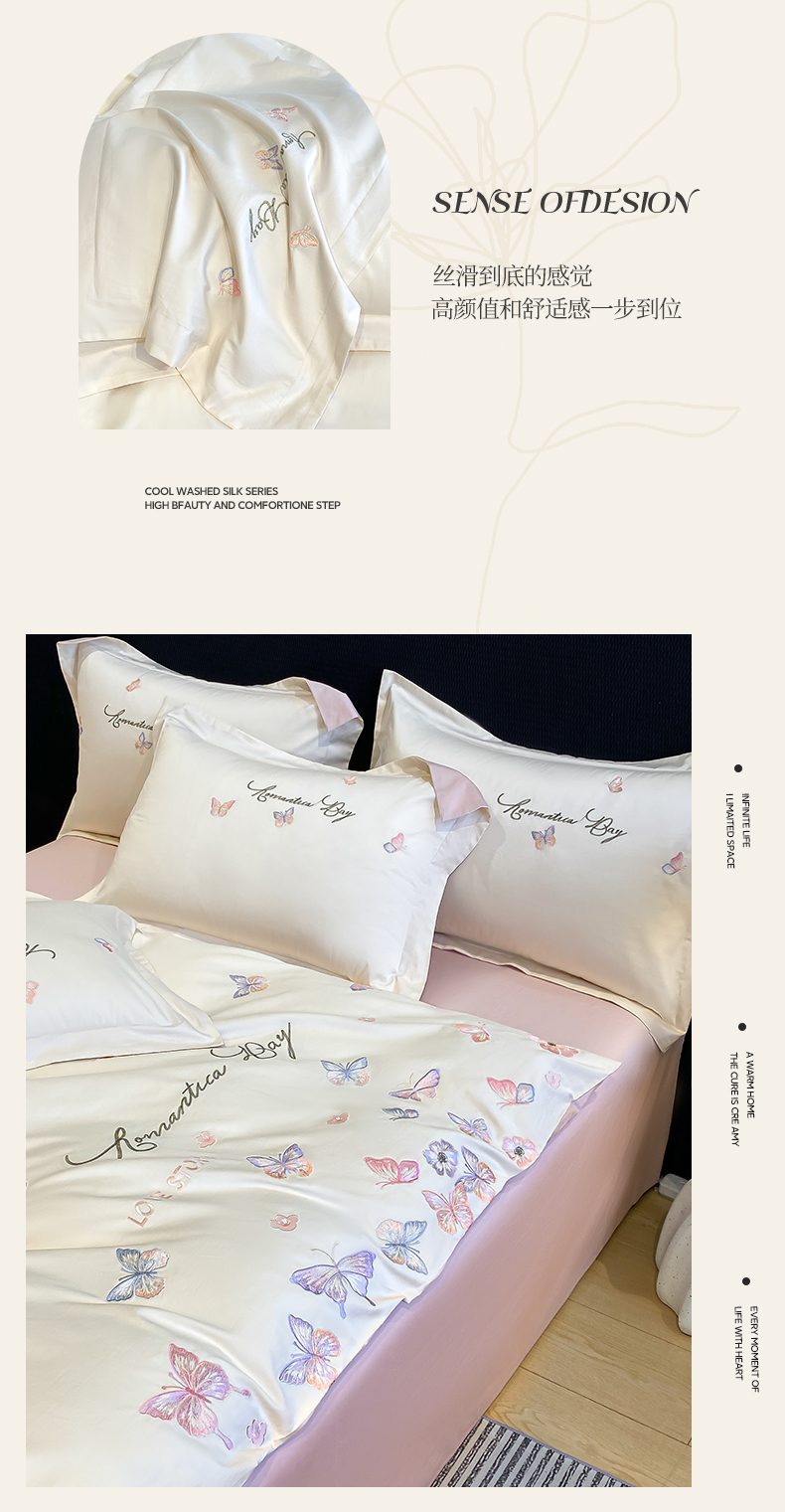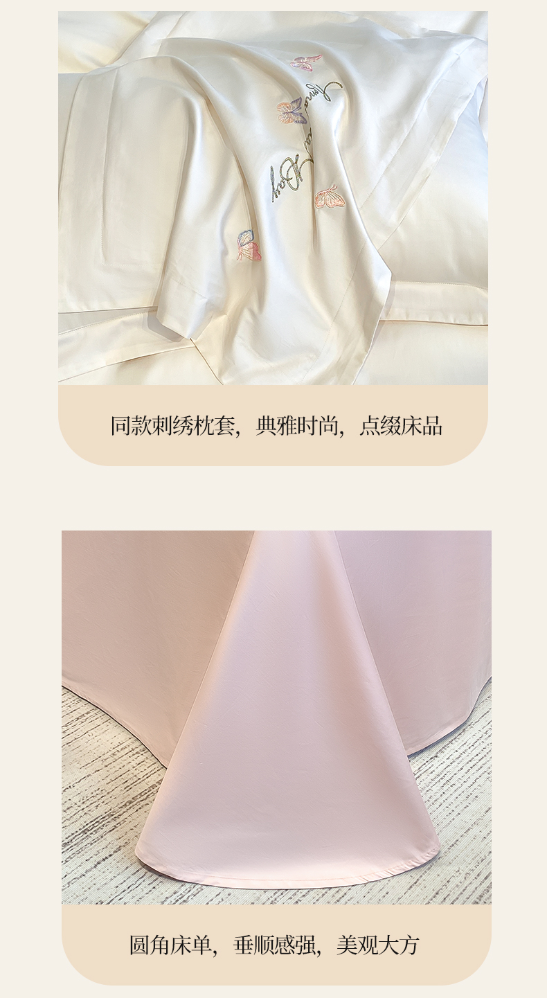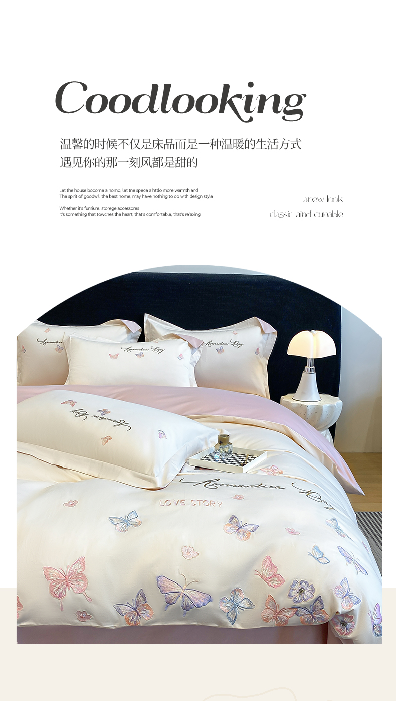 (总)桃园 新款纯棉全棉长绒棉刺绣绣花高端礼盒蝶梦园系列四件套,白粉,白紫,轻奢粉,飘蓝
