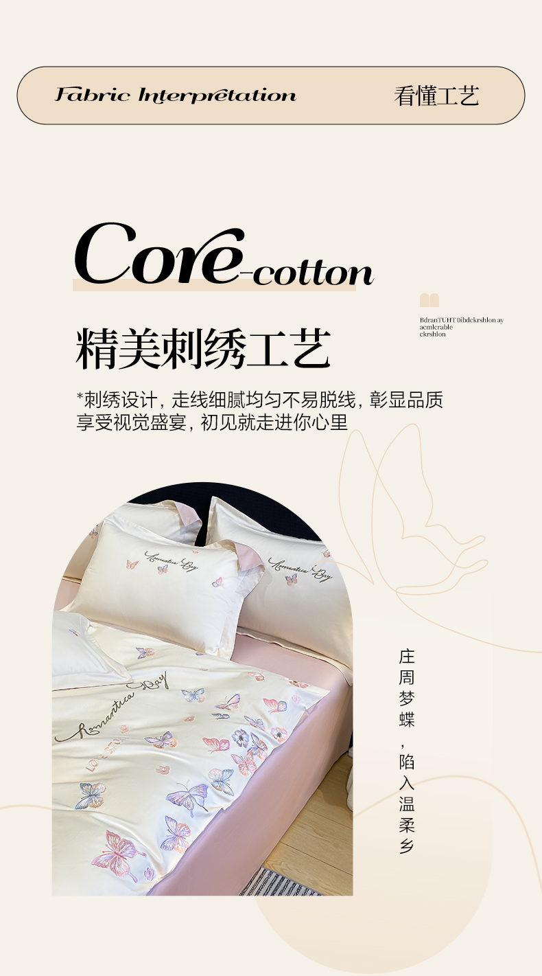 (总)桃园 新款纯棉全棉长绒棉磨毛不掉毛四件套高端礼盒-蝶町系列(包含买家秀),白粉,飘蓝,香芋紫,轻奢粉
