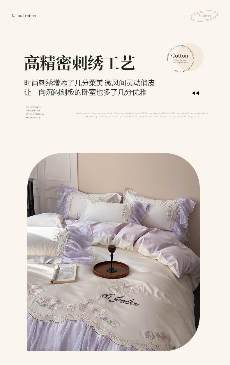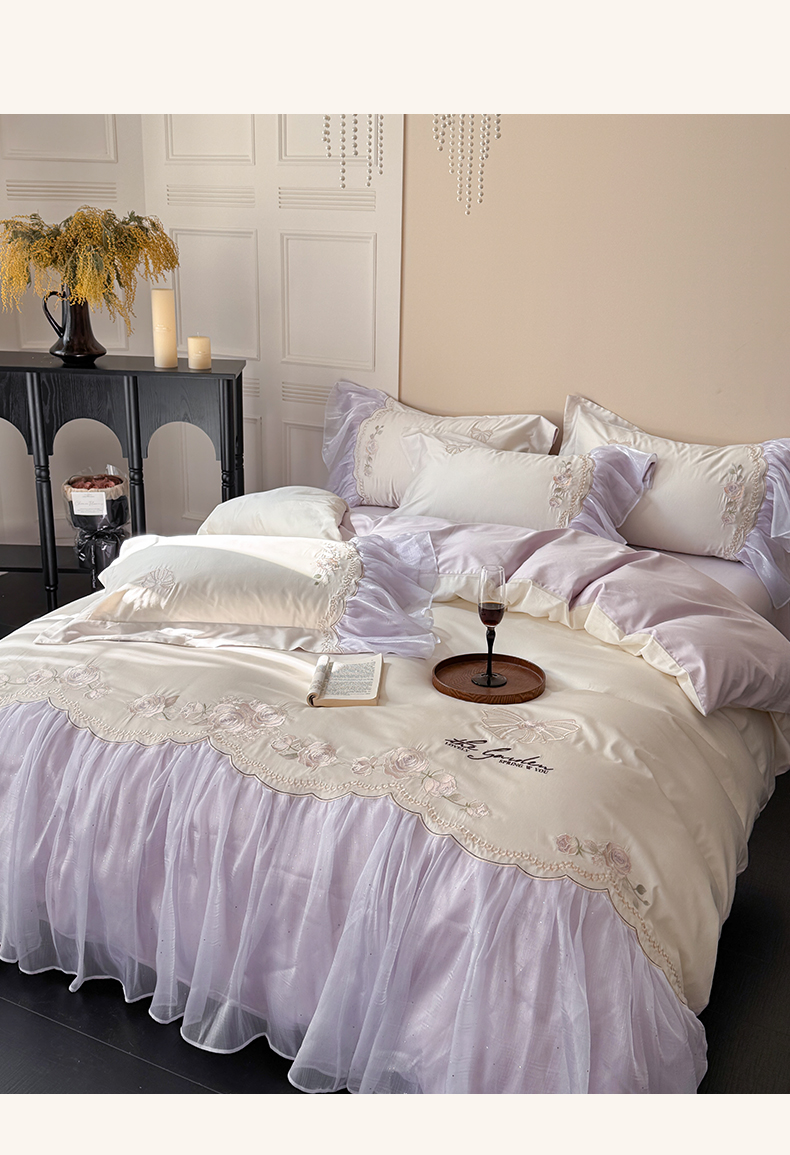 当前位置: 91家纺网 > 商品网购 > 床品套件 > 四件套 > 长绒棉四件套 > 优悦生活馆 2025新款新疆长绒棉纯棉花边刺绣四件套-花间悟语 花间悟语-梦境紫