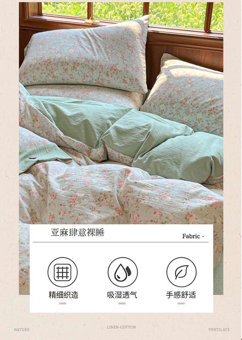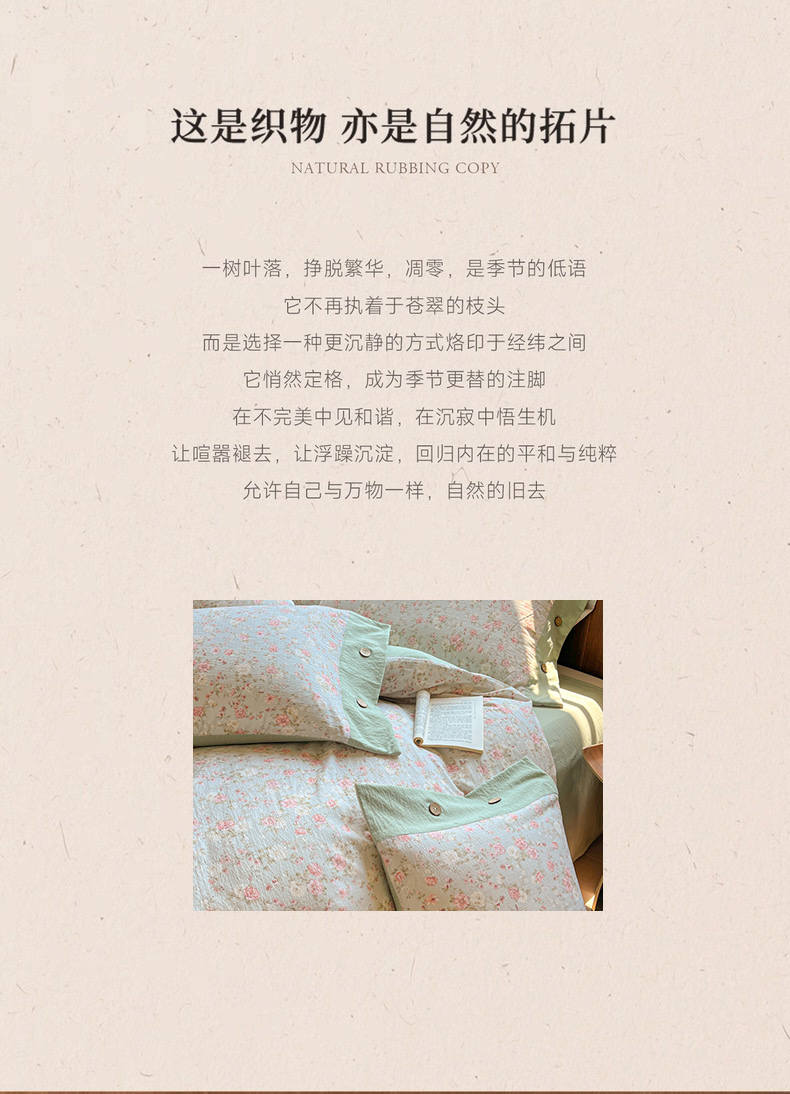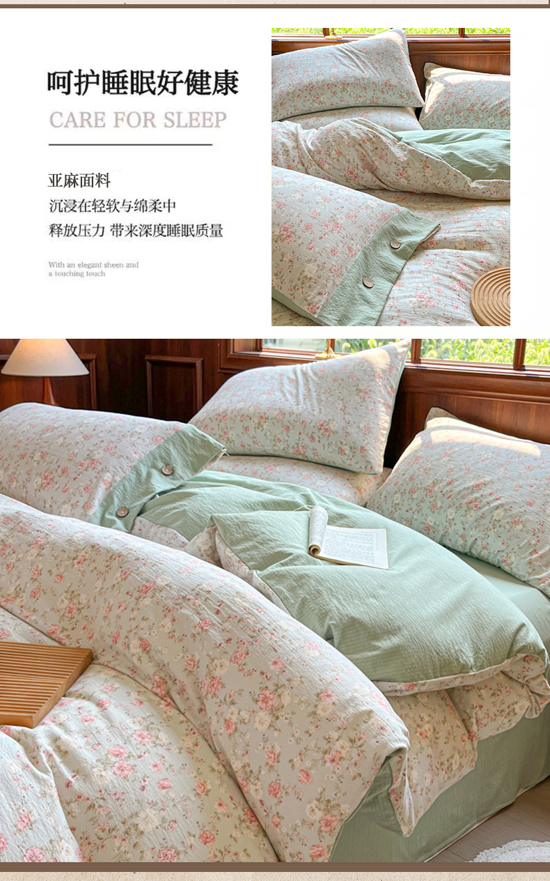 当前位置: 91家纺网 > 商品网购 > 床品套件 > 四件套 > 其它四件套 > 爱彼家纺 2025新款亲肤舒适原麻亚麻水洗棉四件套-纽扣款 花似锦绿