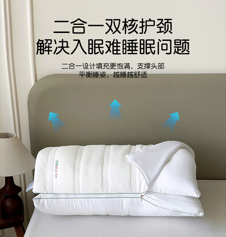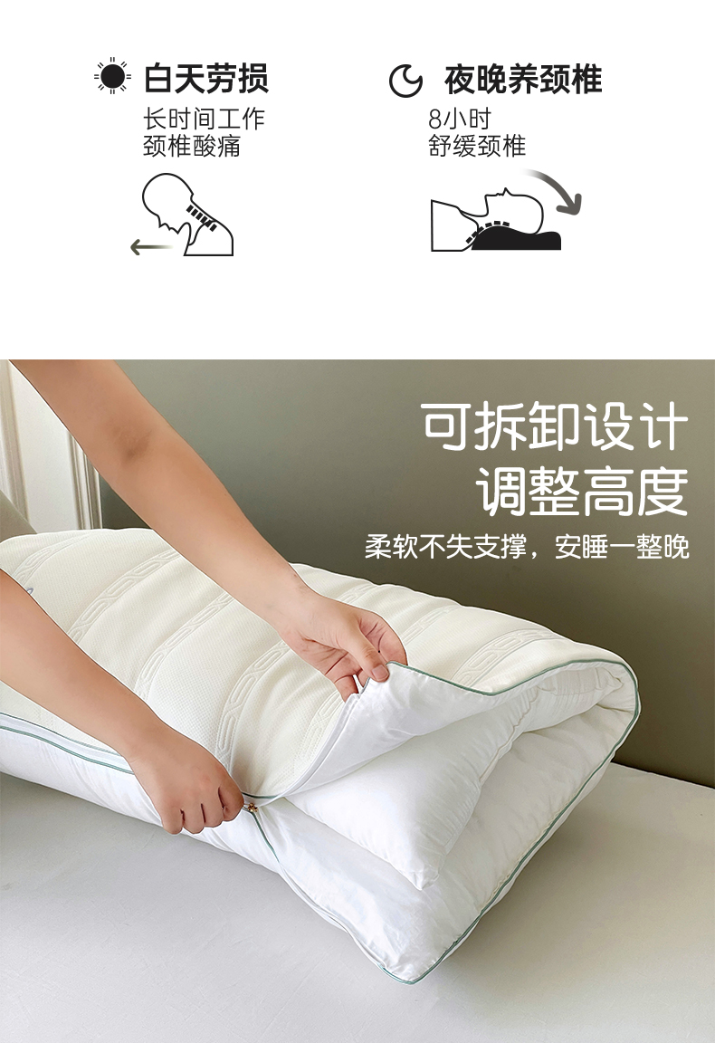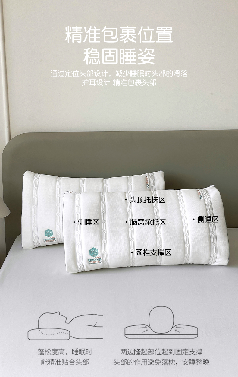 当前位置: 91家纺网 > 商品网购 > 枕头/枕芯/保健枕/颈椎枕 > 普通枕芯 > 亦帆枕芯 2025新款M五双核可拆卸护颈枕头二合一不压耳多功能调节枕头枕芯 M五双核护颈枕-单只装 48x74cm