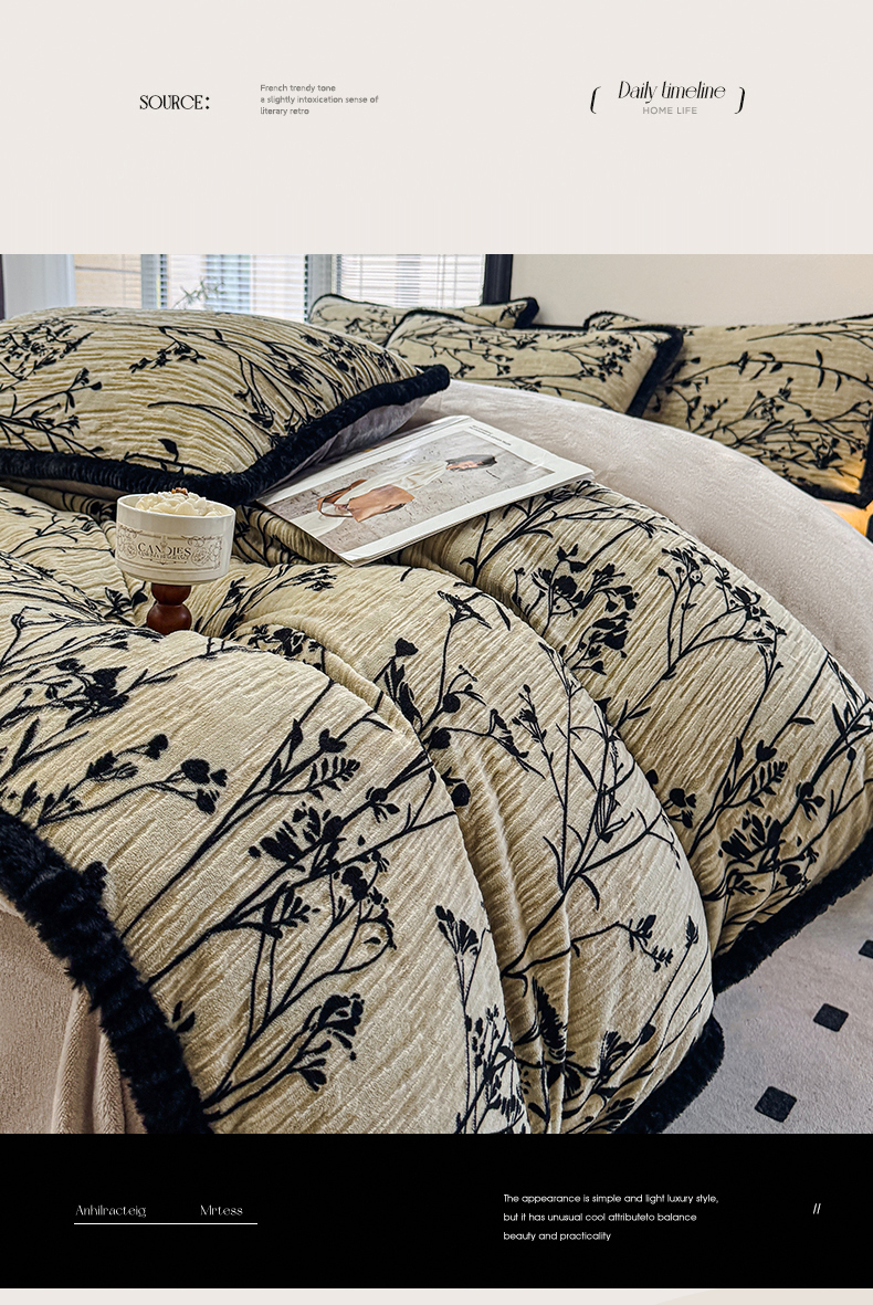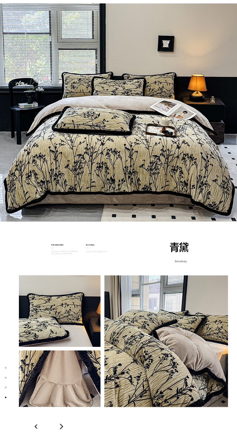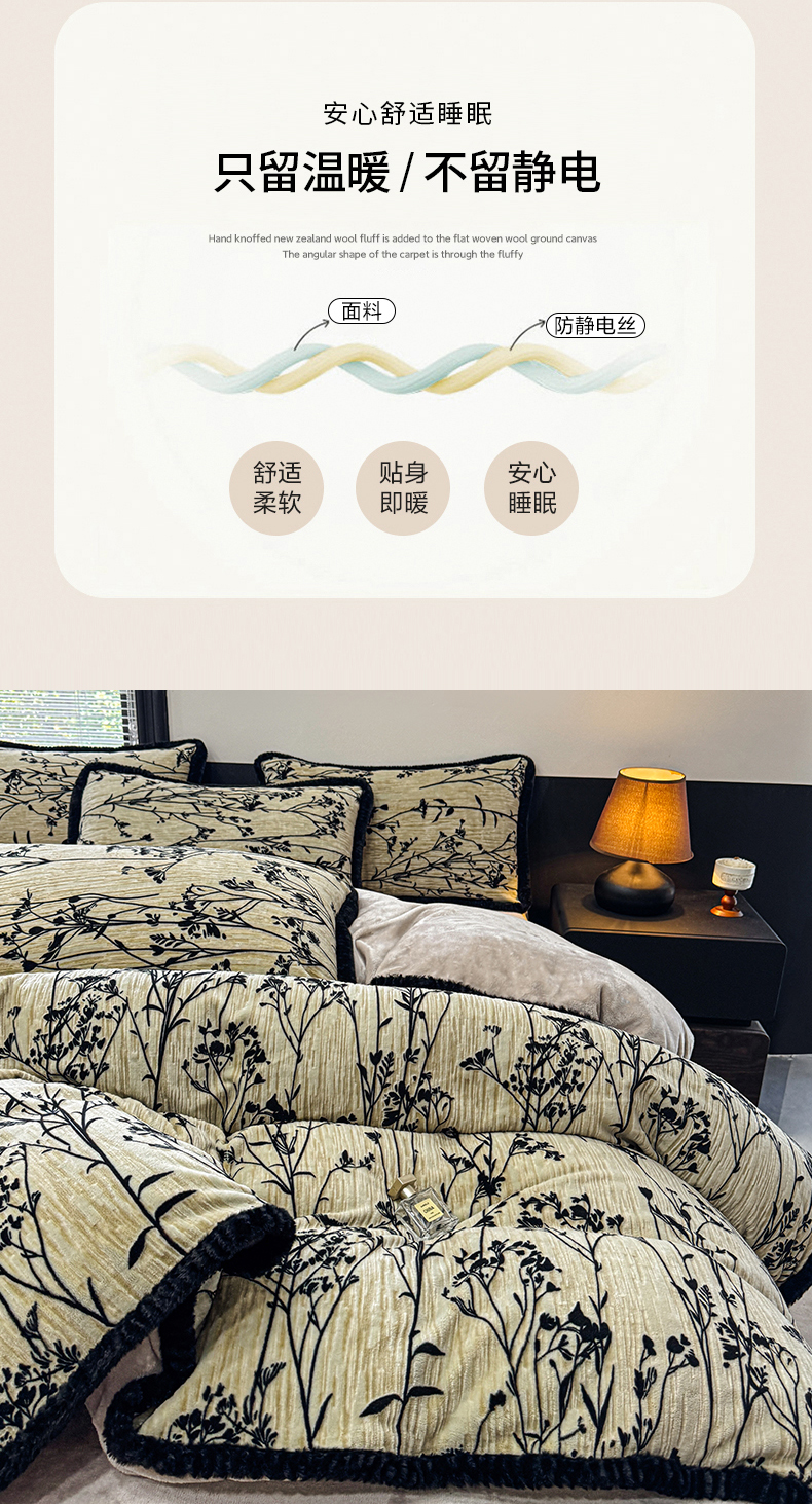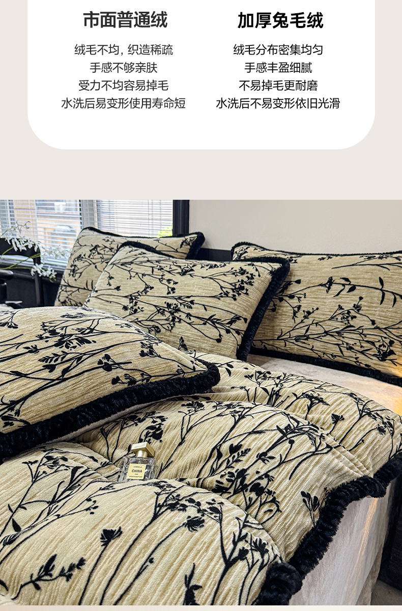 诺梵家纺 2025新款8斤加厚保暖金貂绒牛奶绒印花四件套 花枝如梦,花枝如梦