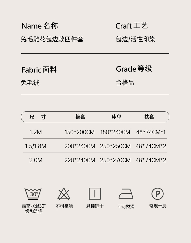 商品名称:诺梵家纺 2025新款兔毛绒包边 雕花绒四件套 青黛