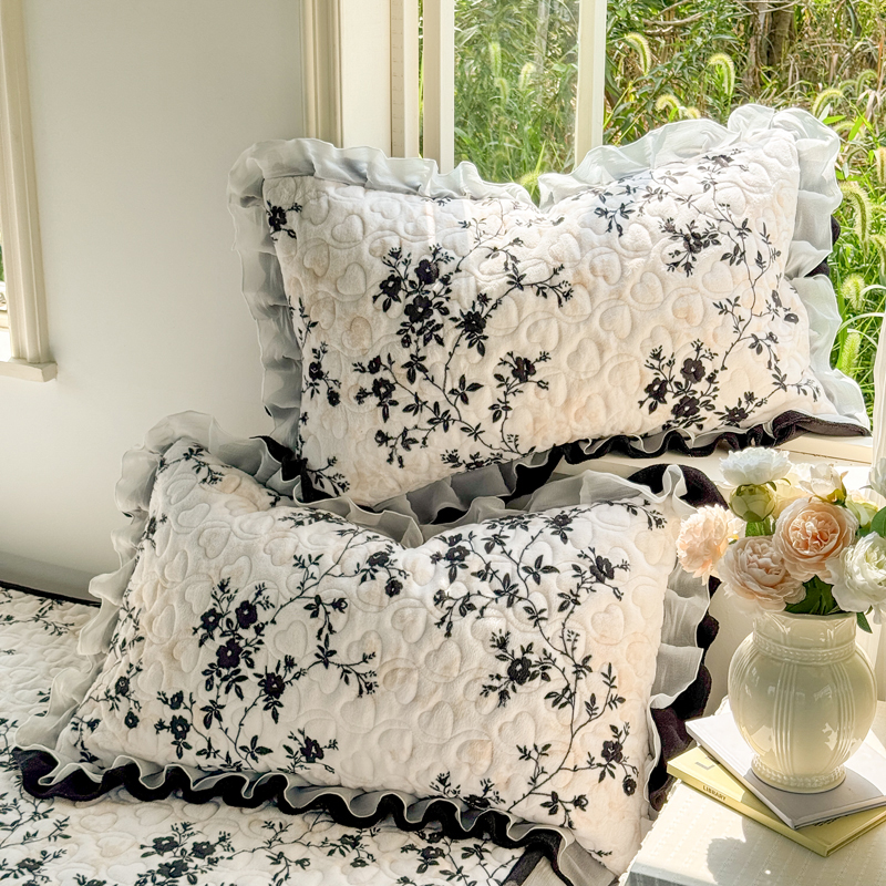 禧缘家纺(原梦想家) 2025新款夹棉双层花边牛奶绒枕套系列 摩卡小镇